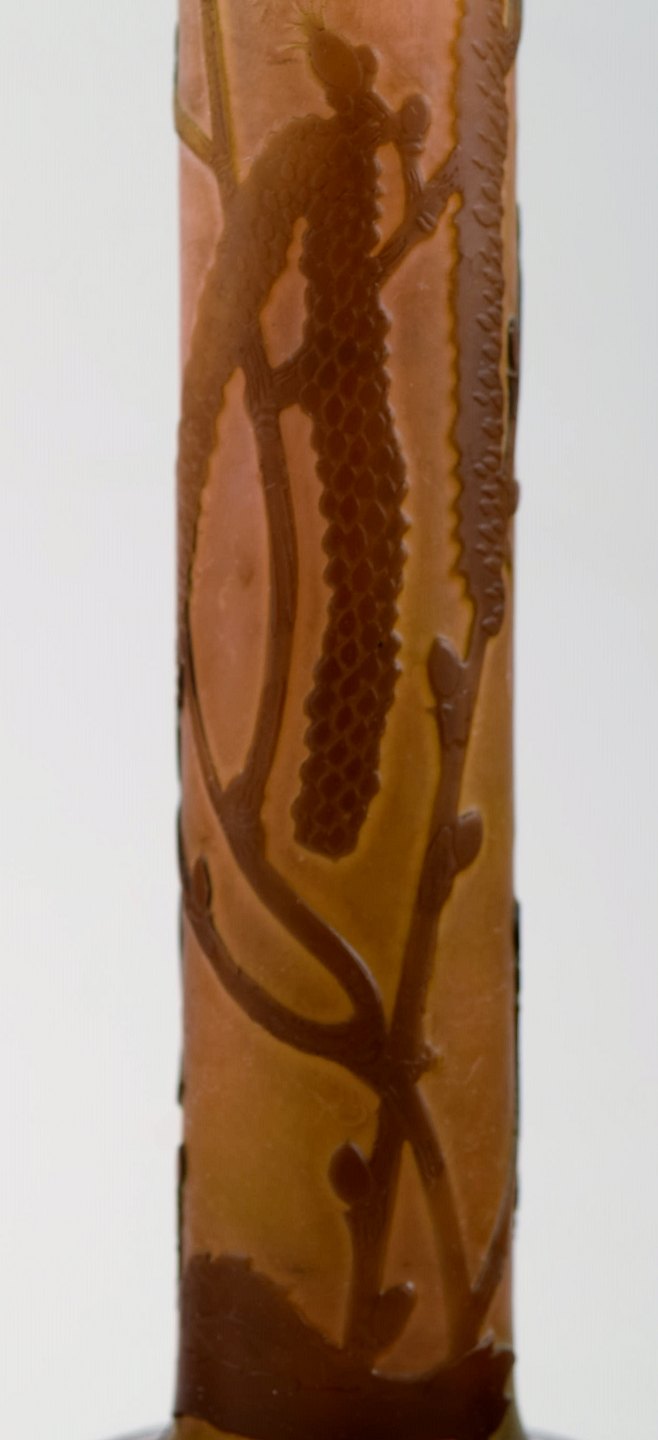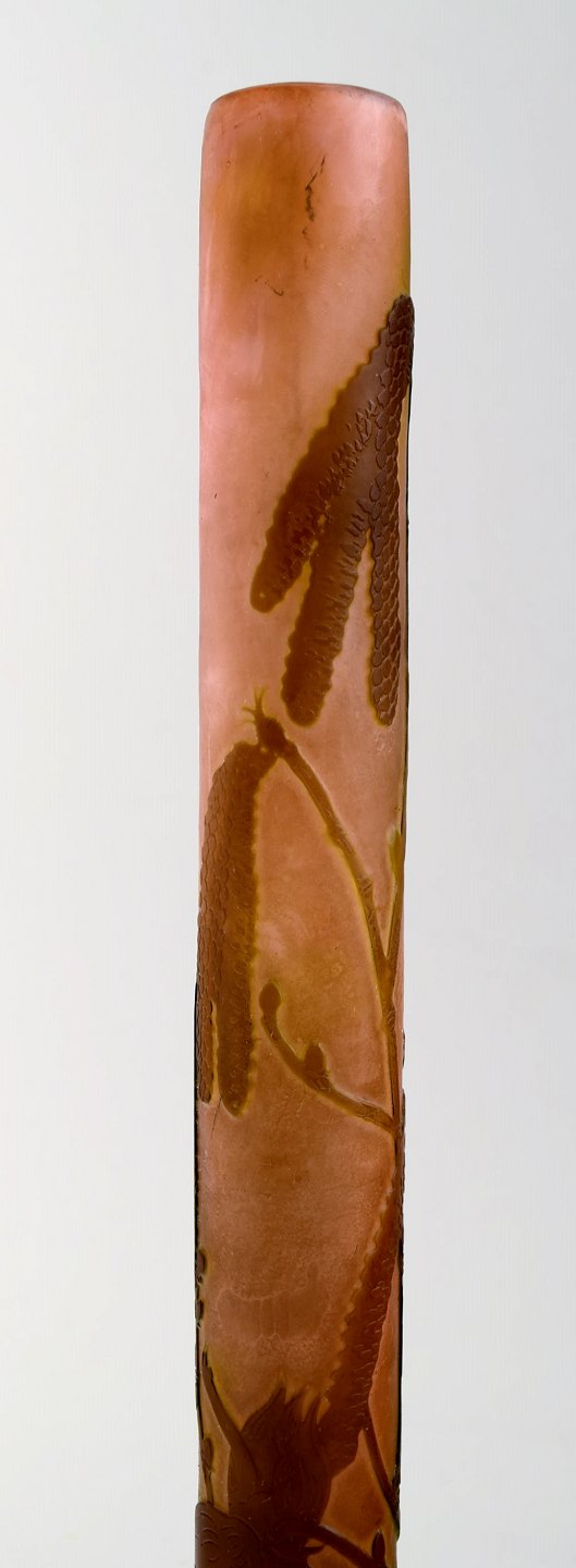 Emile Gallé kunstglasvase, ca. 1910´erne. Dekoreret med blomster. Mċler : 28,5 cm. x 9 cm. Signeret. I perfekt stand.