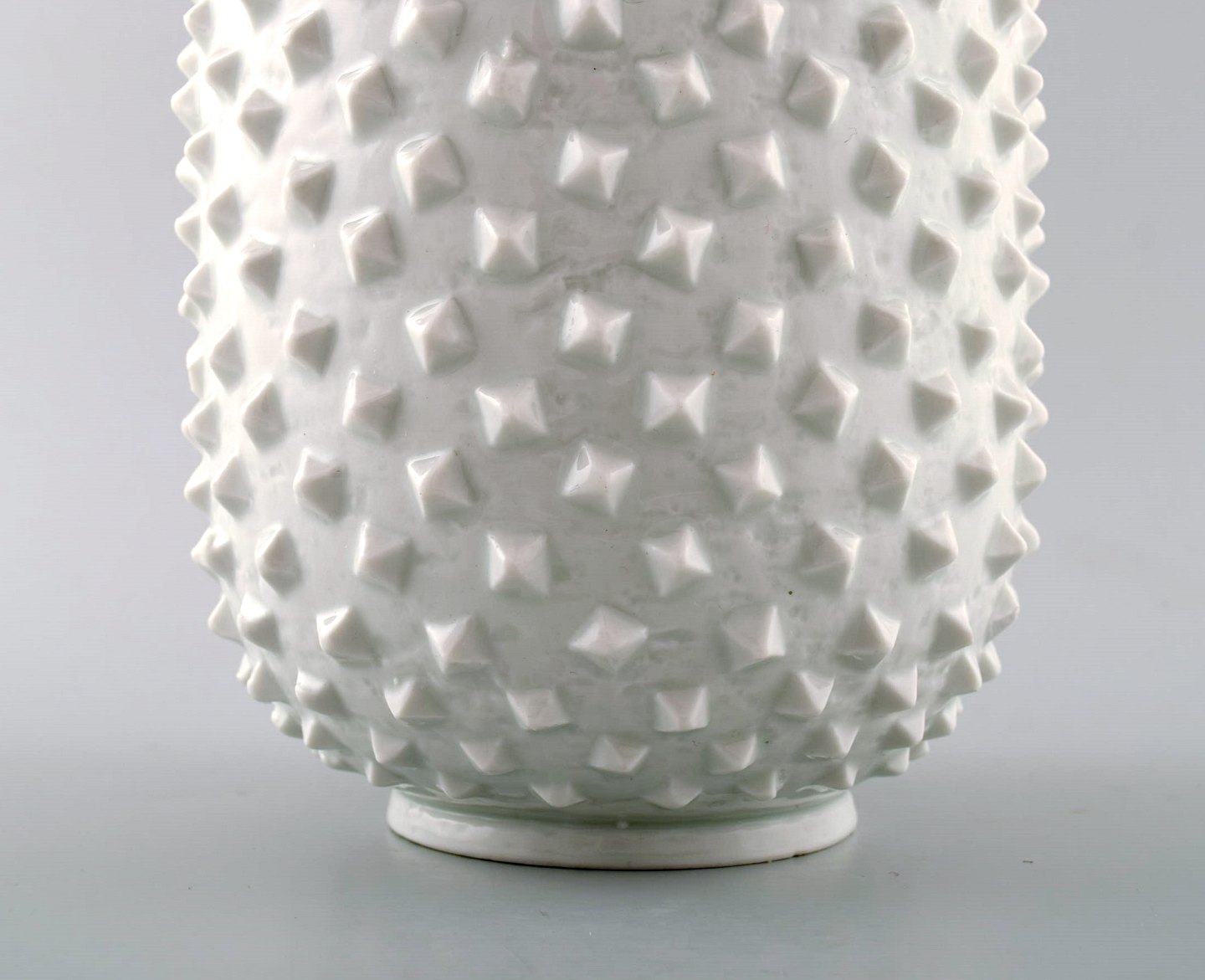 Rörstrand Gunnar Nylund "Chamotte" vase i knobbet stil. Måler : 22 cm. x 14 cm. Hvid glasur. Stemplet. I perfekt stand.