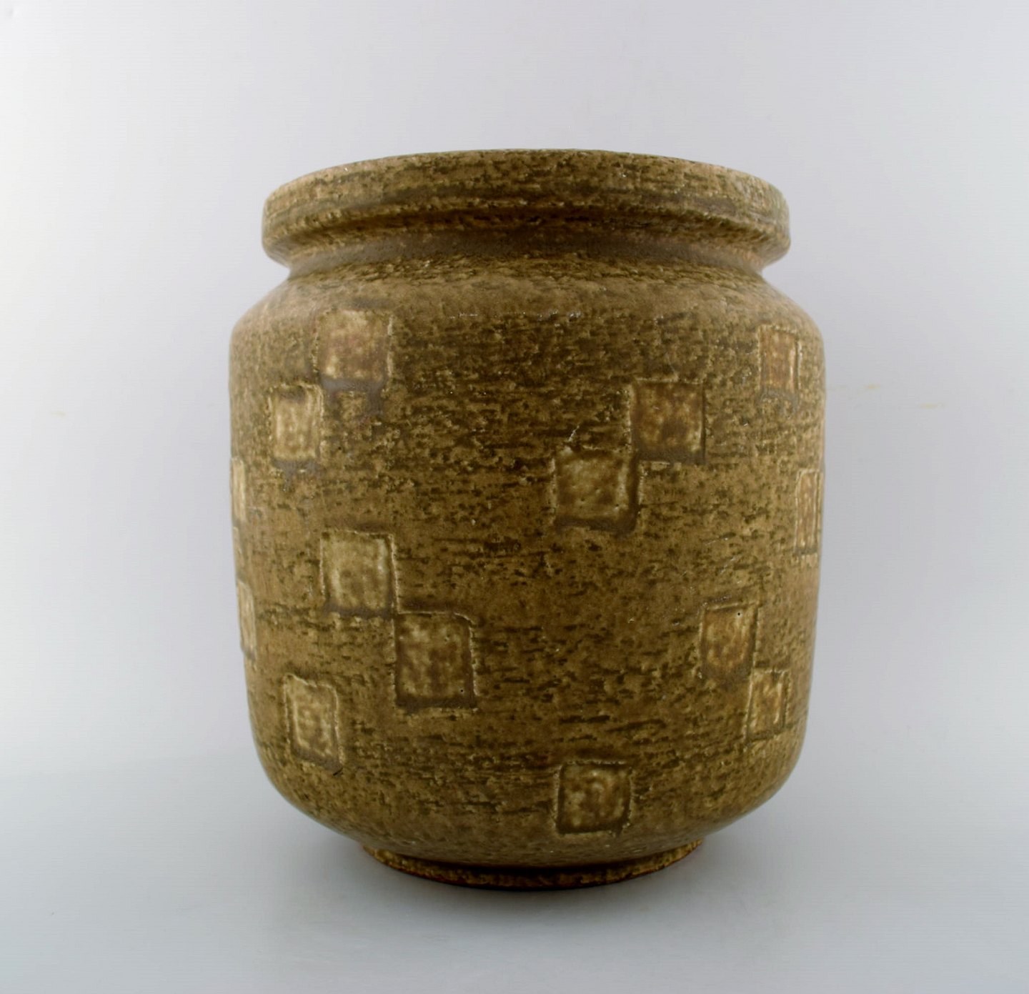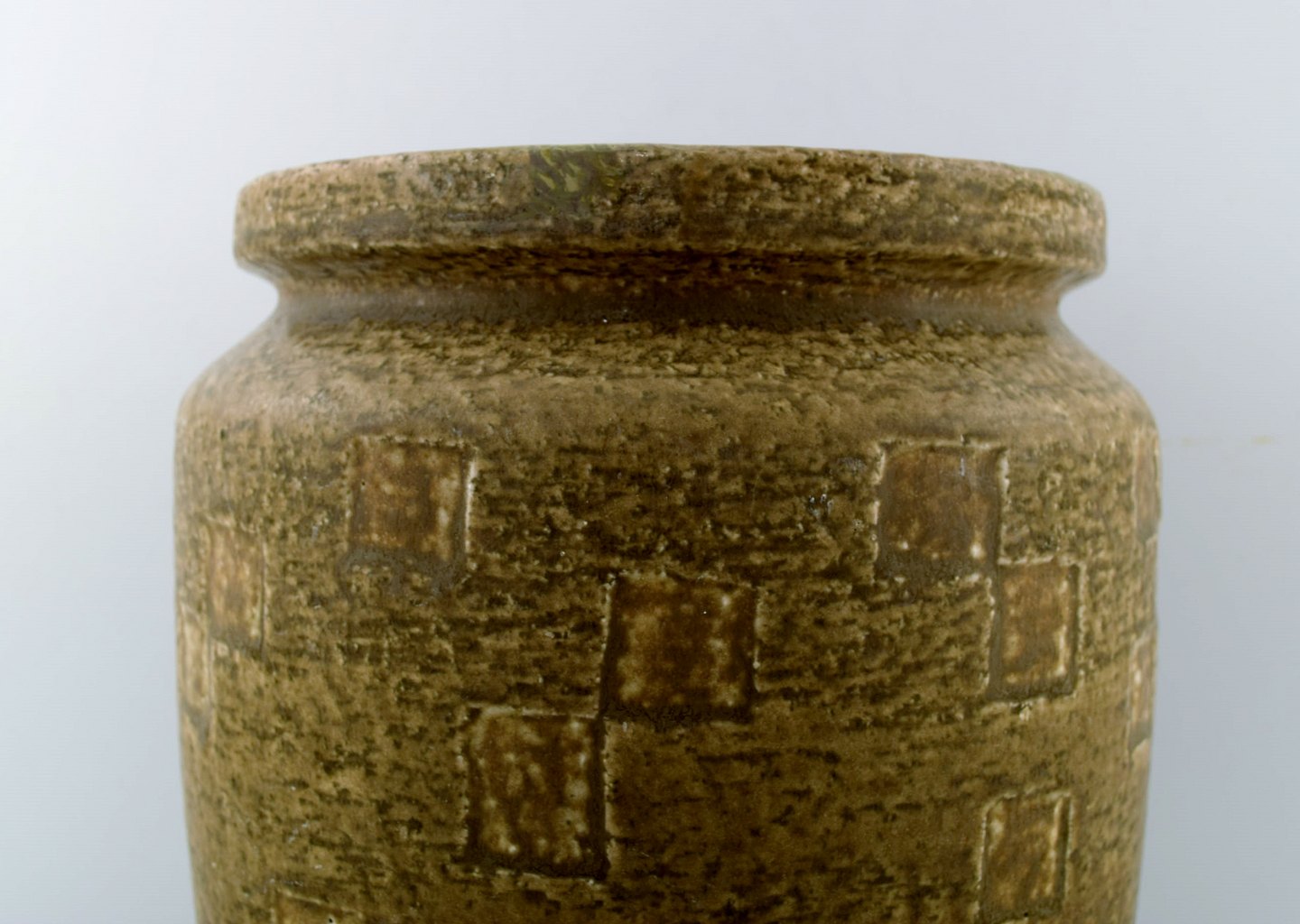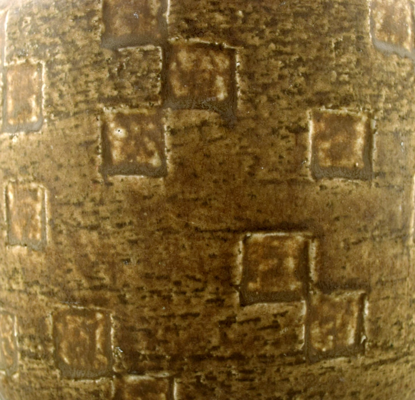 Saxbo stor vase af stentøj i moderne design, glasur i gulbrune nuancer.