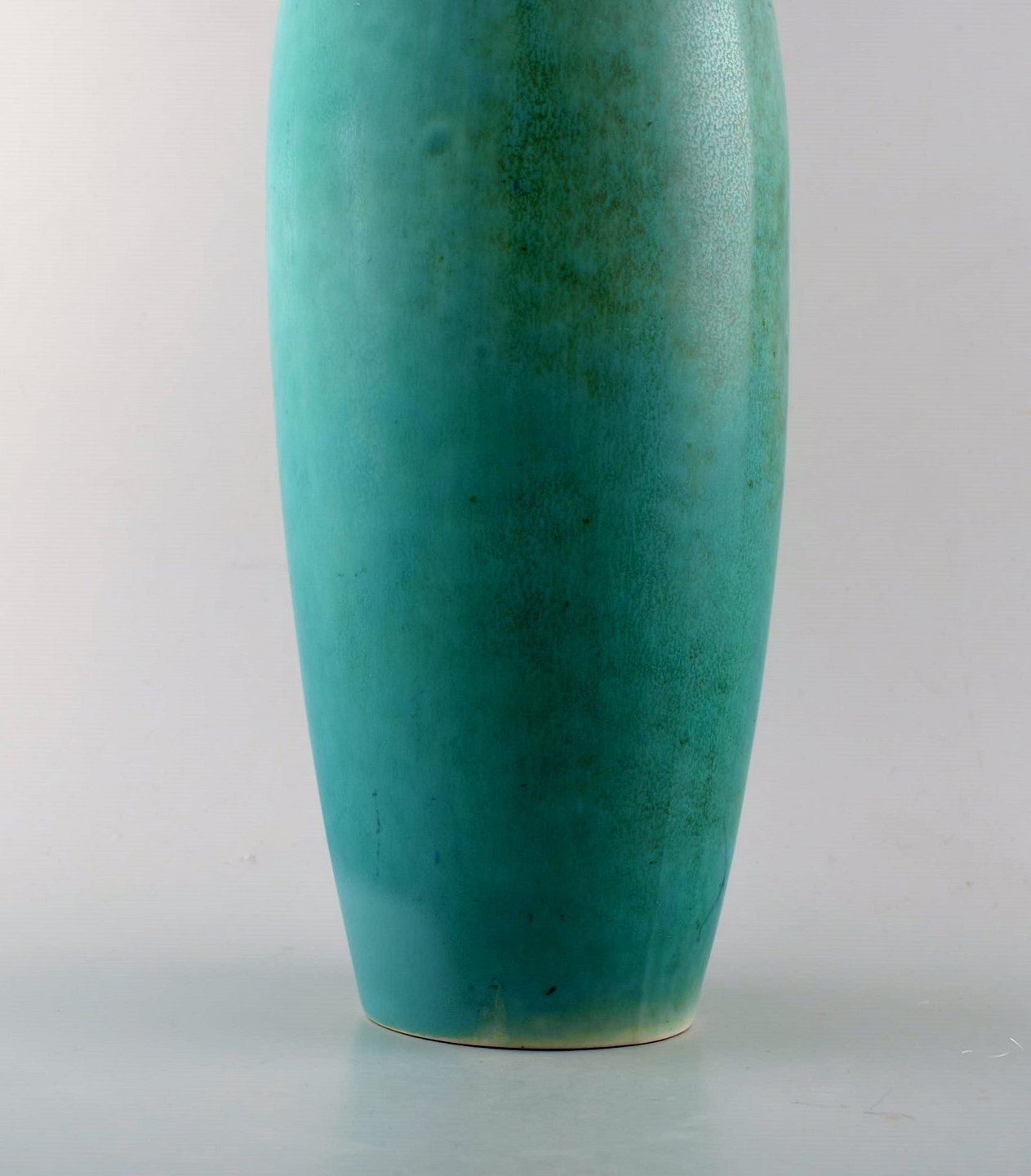 Carl Harry Stålhane, Rörstrand meget stor og sjælden gulvvase i keramik. Usædvanlig smuk glasur i grønne nuancer. Perfekt stand. 2. sortering. Måler: 56 x 13 cm.