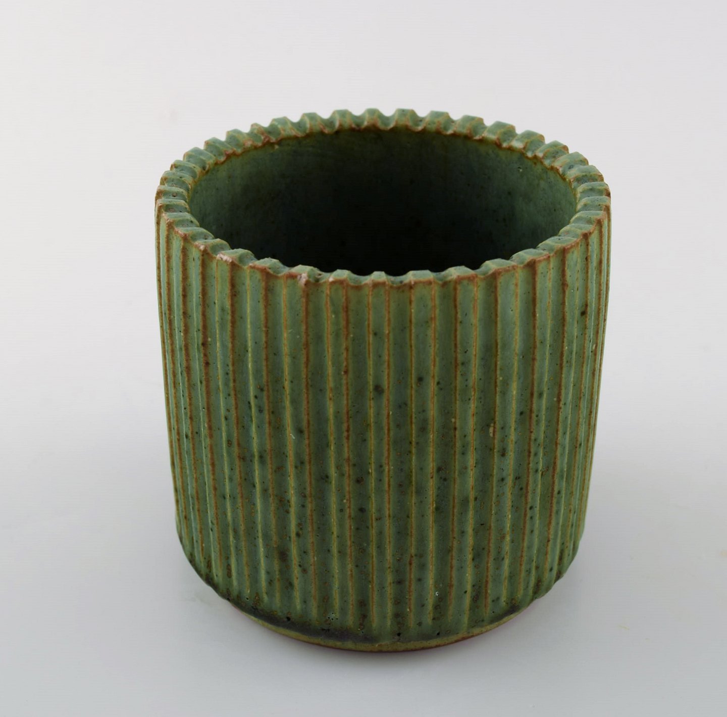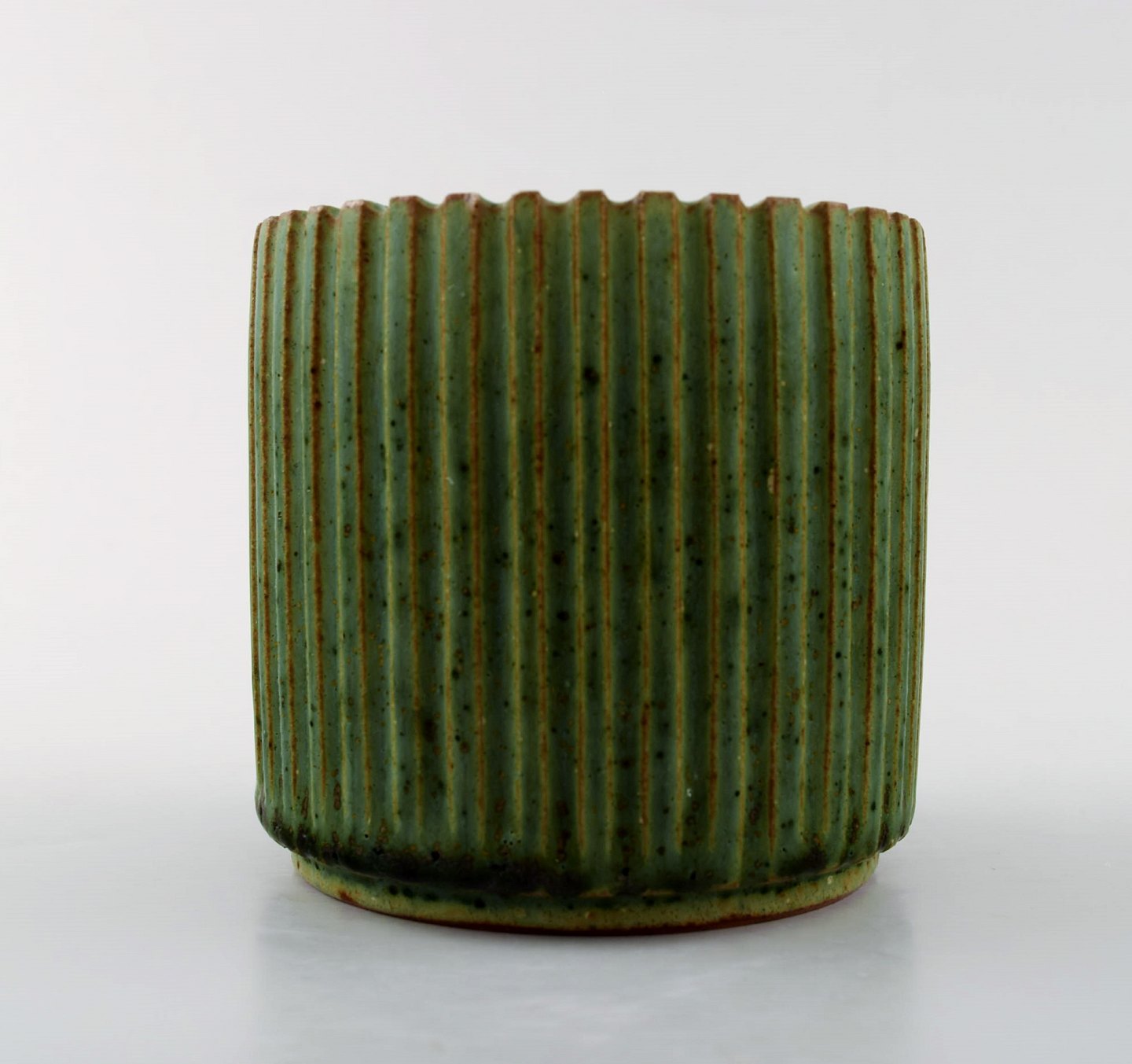 Arne Bang. Keramik vase. Mærket AB 129. Smuk glasur i grønne nuancer. I perfekt stand. Måler 8,5 cm. x 8 cm.