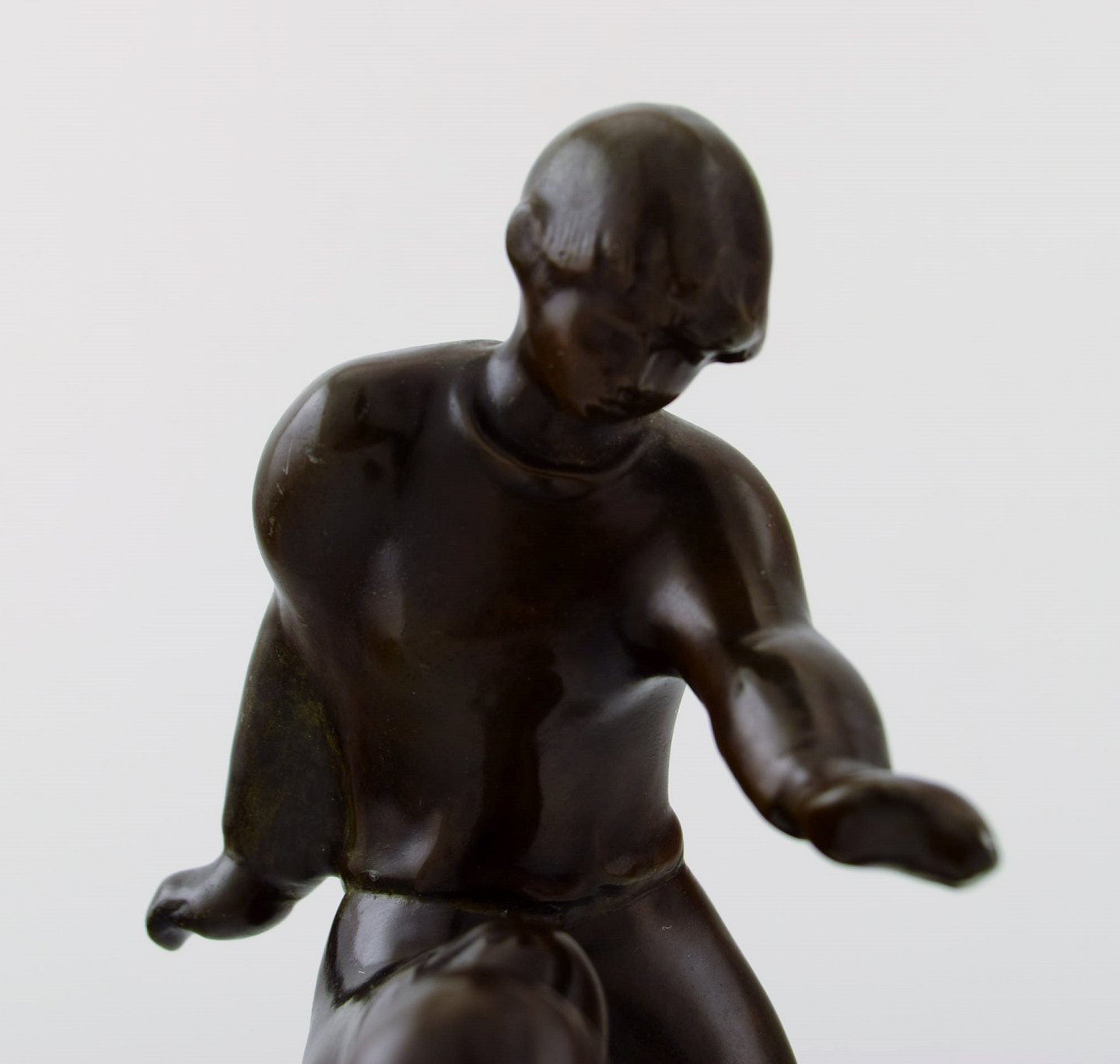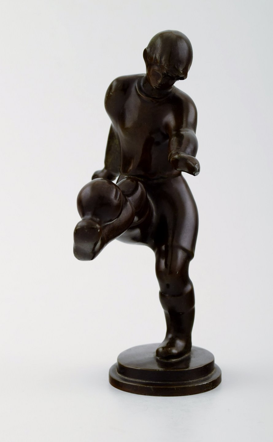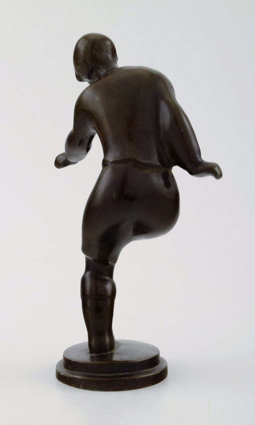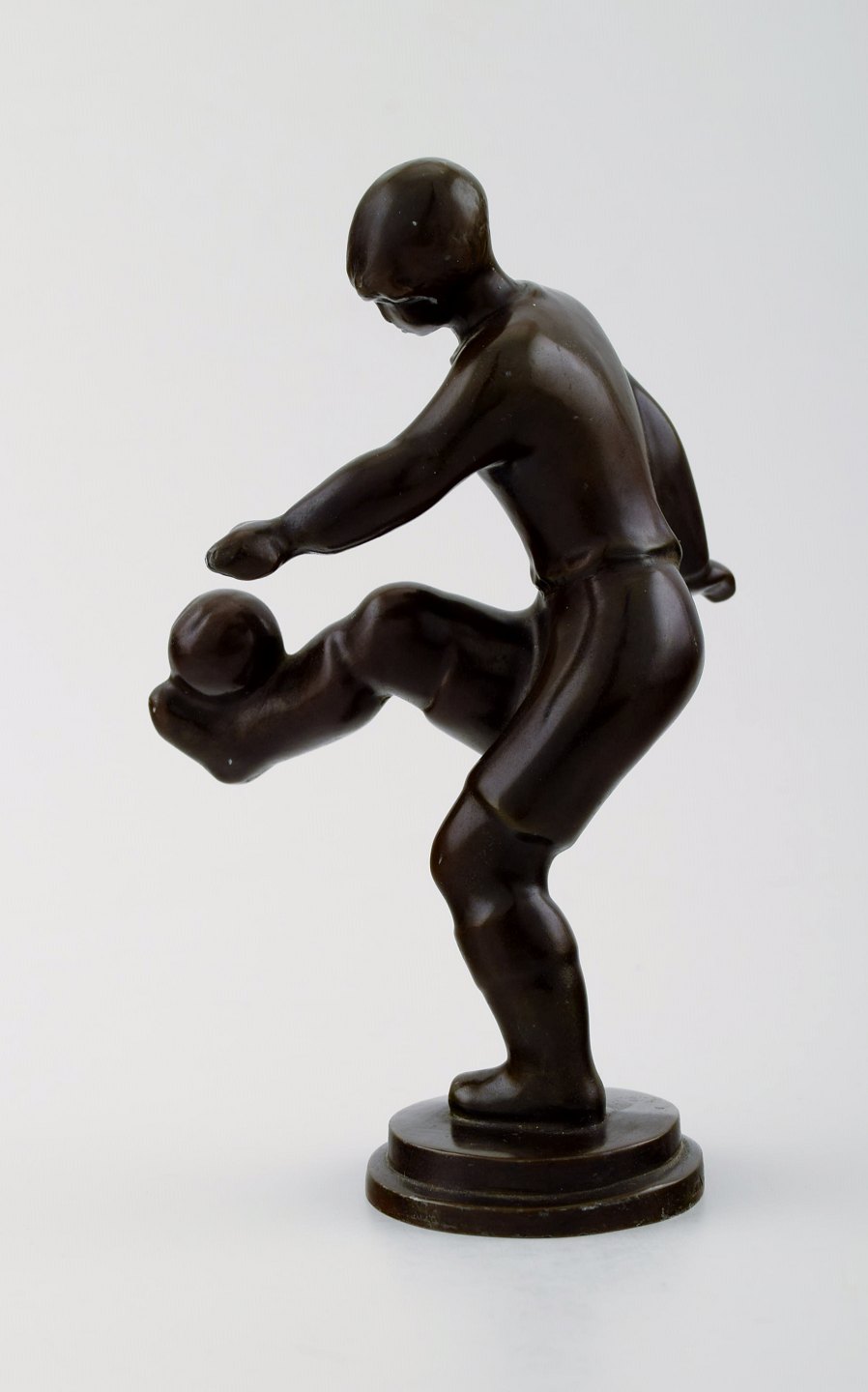 Sjælden Just Andersen. Figur af patineret diskometal i form af fodboldspiller nr. 1739.