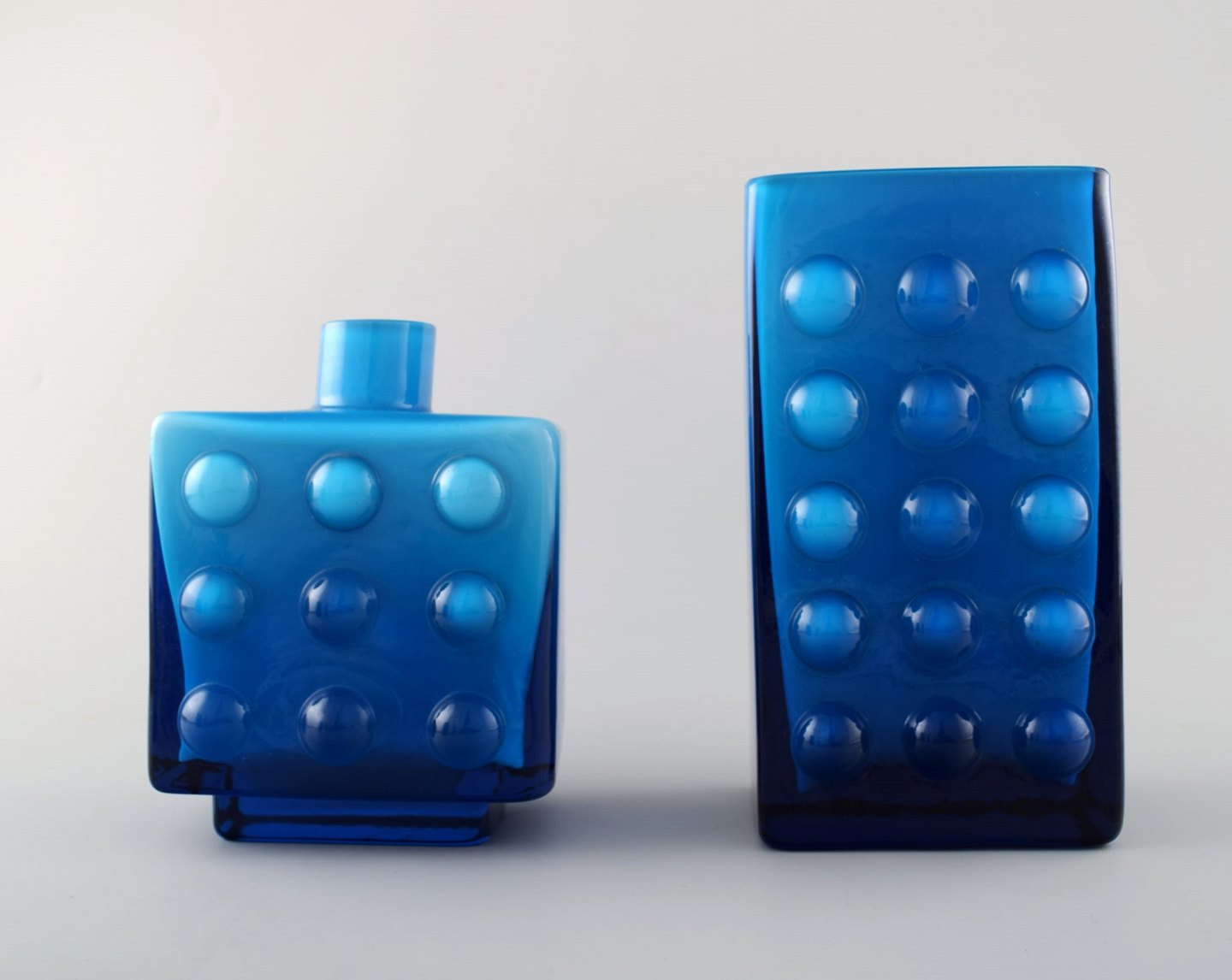 Samling svensk kunstglas, 4 turkise vaser i moderne design.