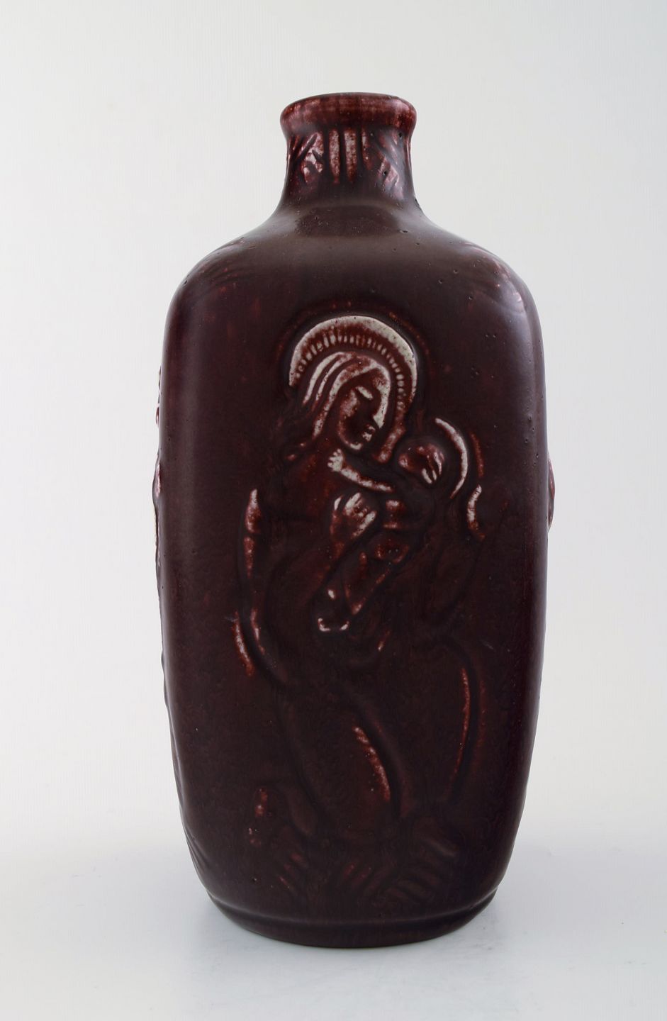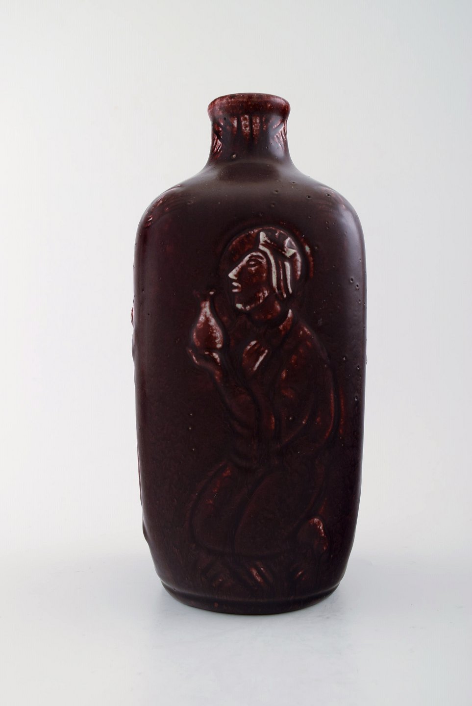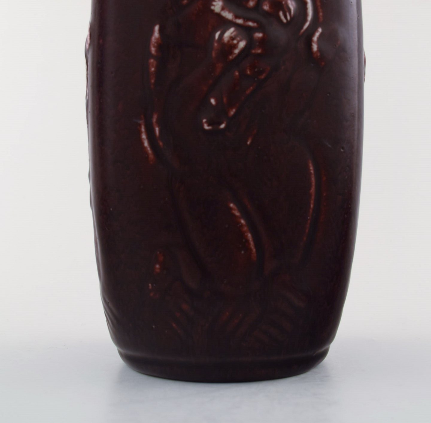 Royal Copenhagen Jais Nielsen keramik vase, okseblods glasur. Stemplet med de 3 blå bølger for Royal Copenhagen. Måler: 23,5 cm. x 10,5 cm. I perfekt stand, første sortering.