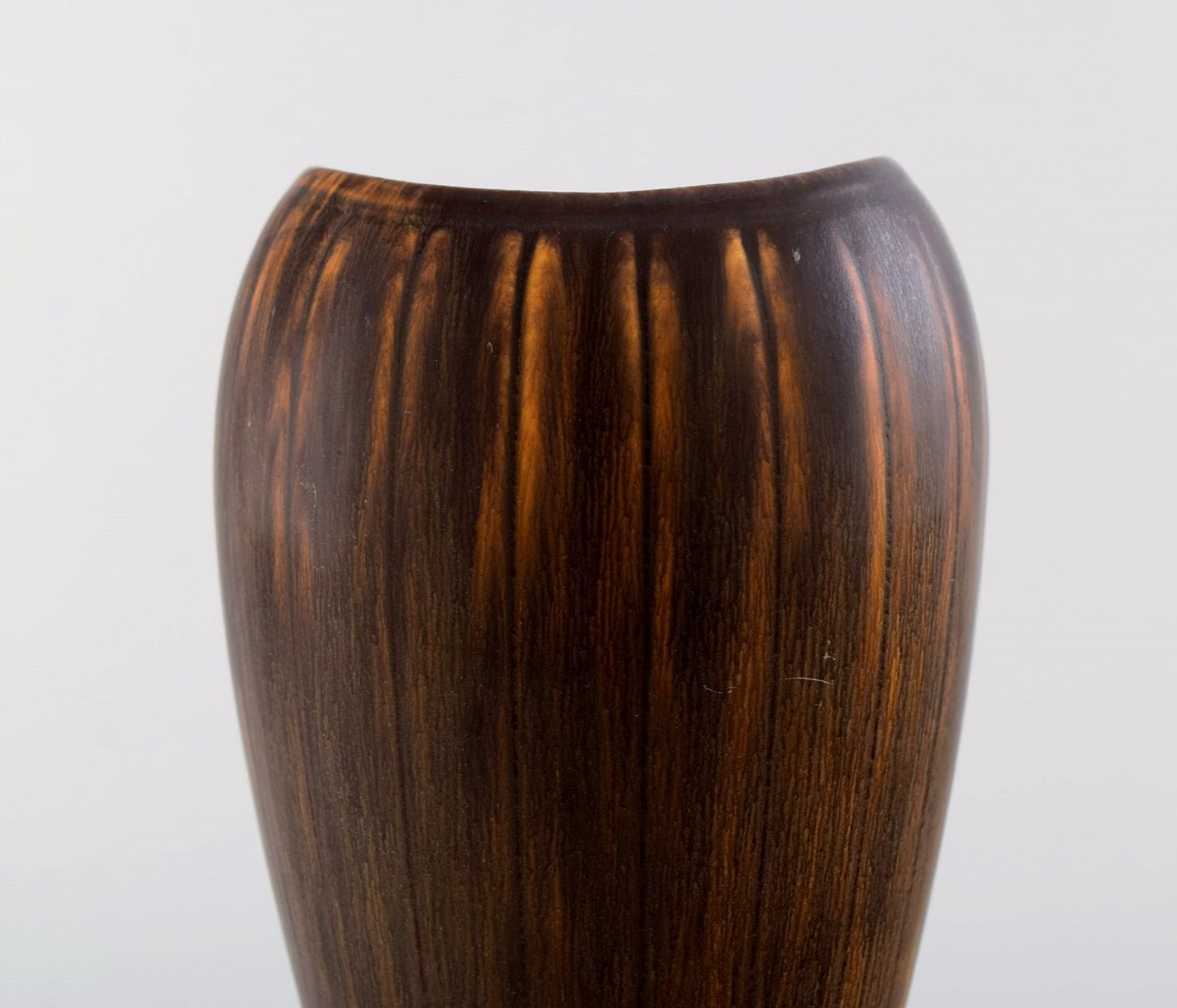 Rørstrand/Rörstrand stentøjsvase af Gunnar Nylund. 15 cm. høj. Diameter 10 cm. I perfekt stand. Glasur i brune nuancer. 2. sortering. Stemplet.