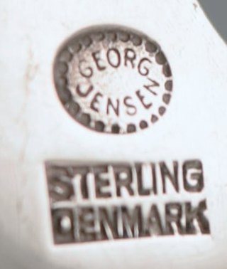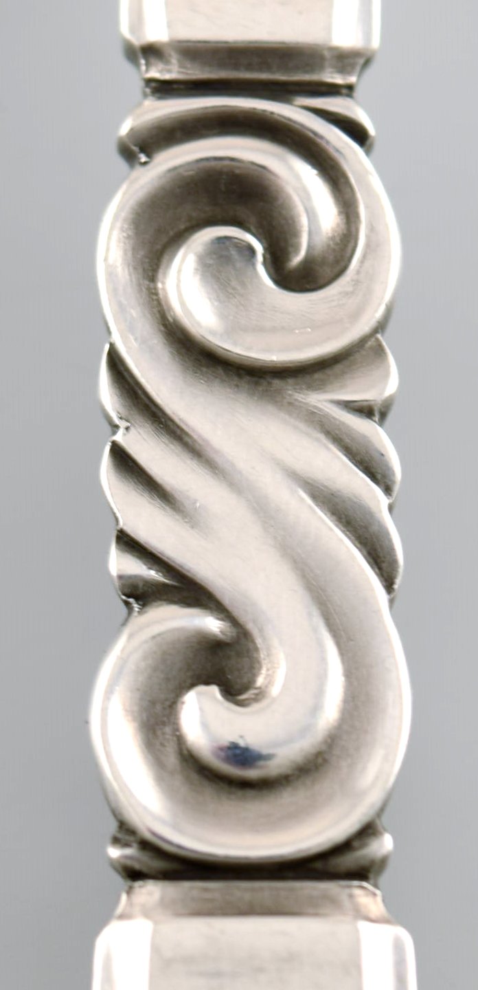 Georg Jensen. Bestik, Saga nr. 22, hammerslået Sterlingsølv bestående af: 6 bouillon skeer.