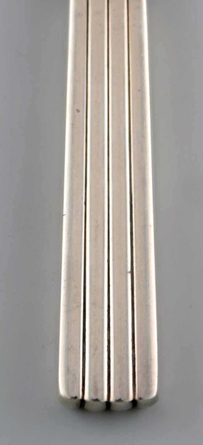 Det elegante bestik Bernadotte med det kanellerede skaft er tegnet af den svenske designer og kongesøn Sigvard Bernadotte for Georg Jensen Sølvsmedie i 1939.