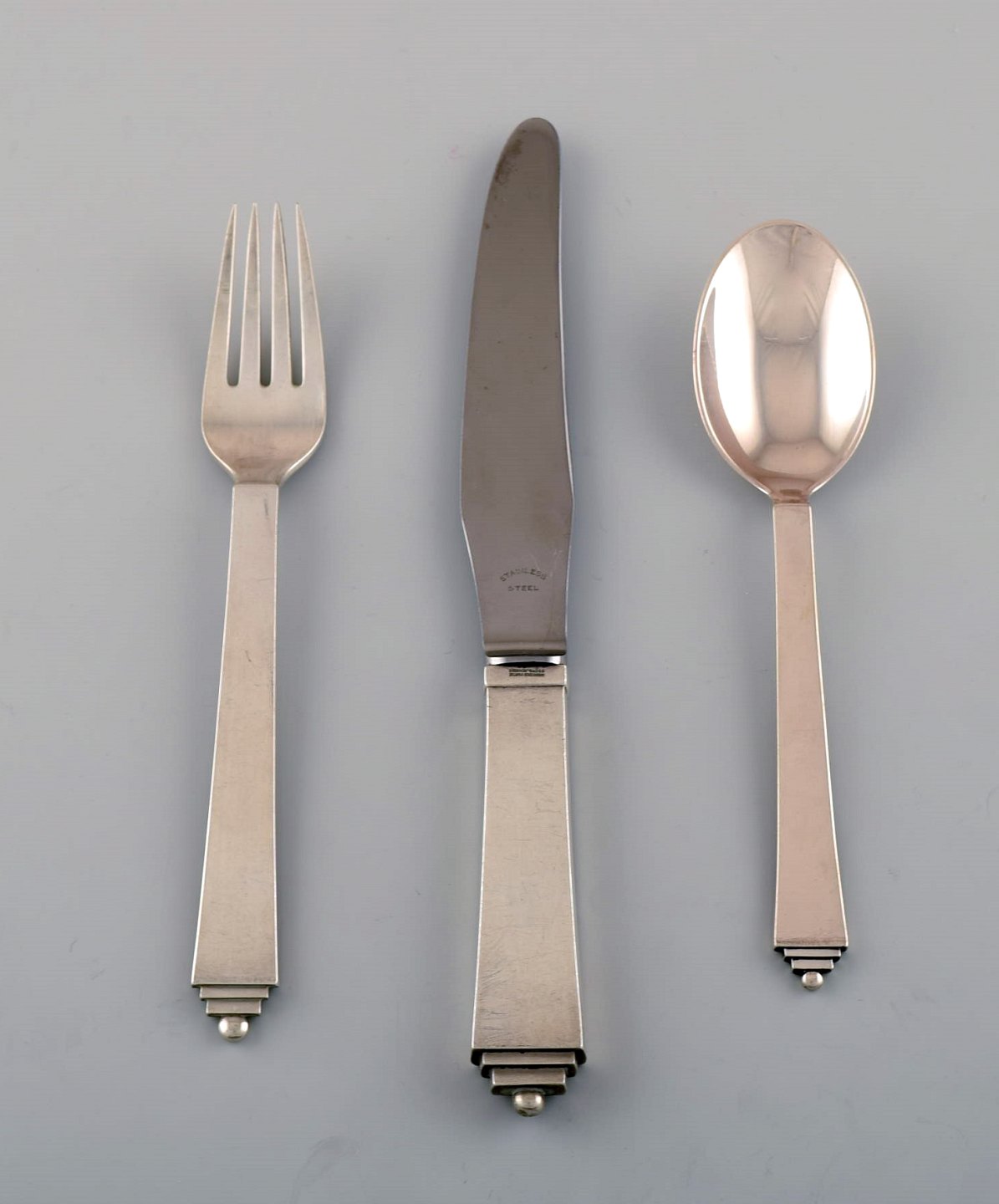 Georg Jensen Pyramide middagsservice af sølv til tolv personer.