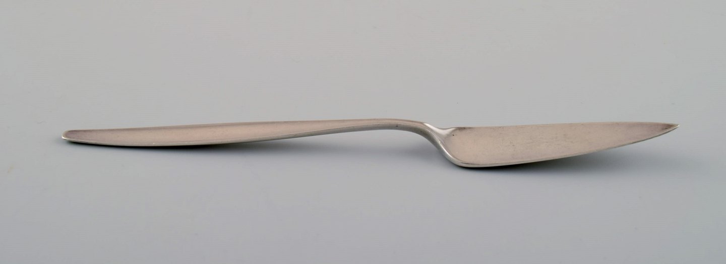 Georg Jensen Sterlingsølv Cypress fiskekniv. Måler 19,5 cm. I perfekt stand. Stemplet. Designet af Tias Eckhoff 1952-1953 For Georg Jensen Sølvsmedie, Danmark. Cypresmønstret nr. 99.