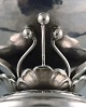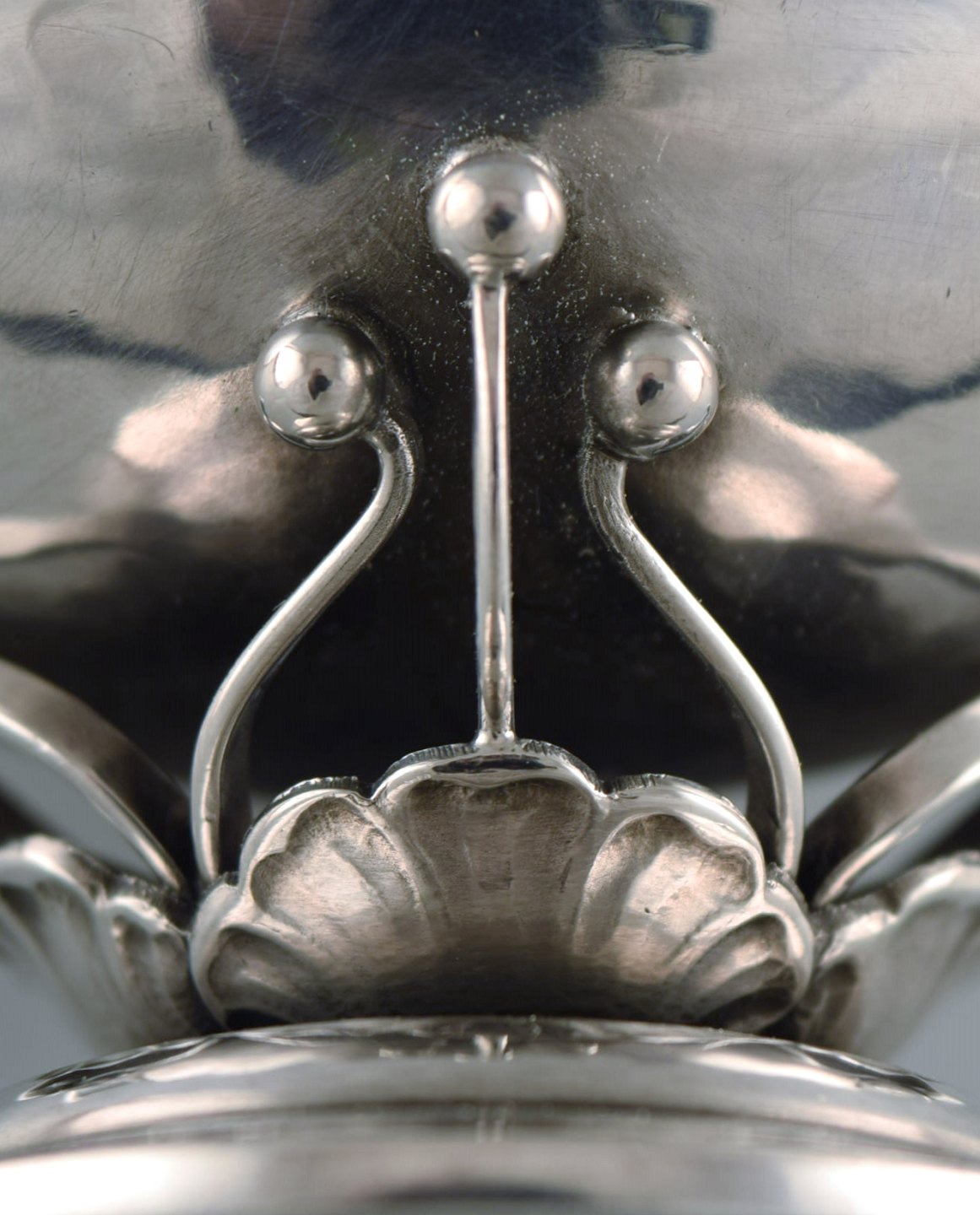 Georg Jensen: Kande af sterlingsølv, smedet med blomsterknopper og gennembrudt stamme med blade.