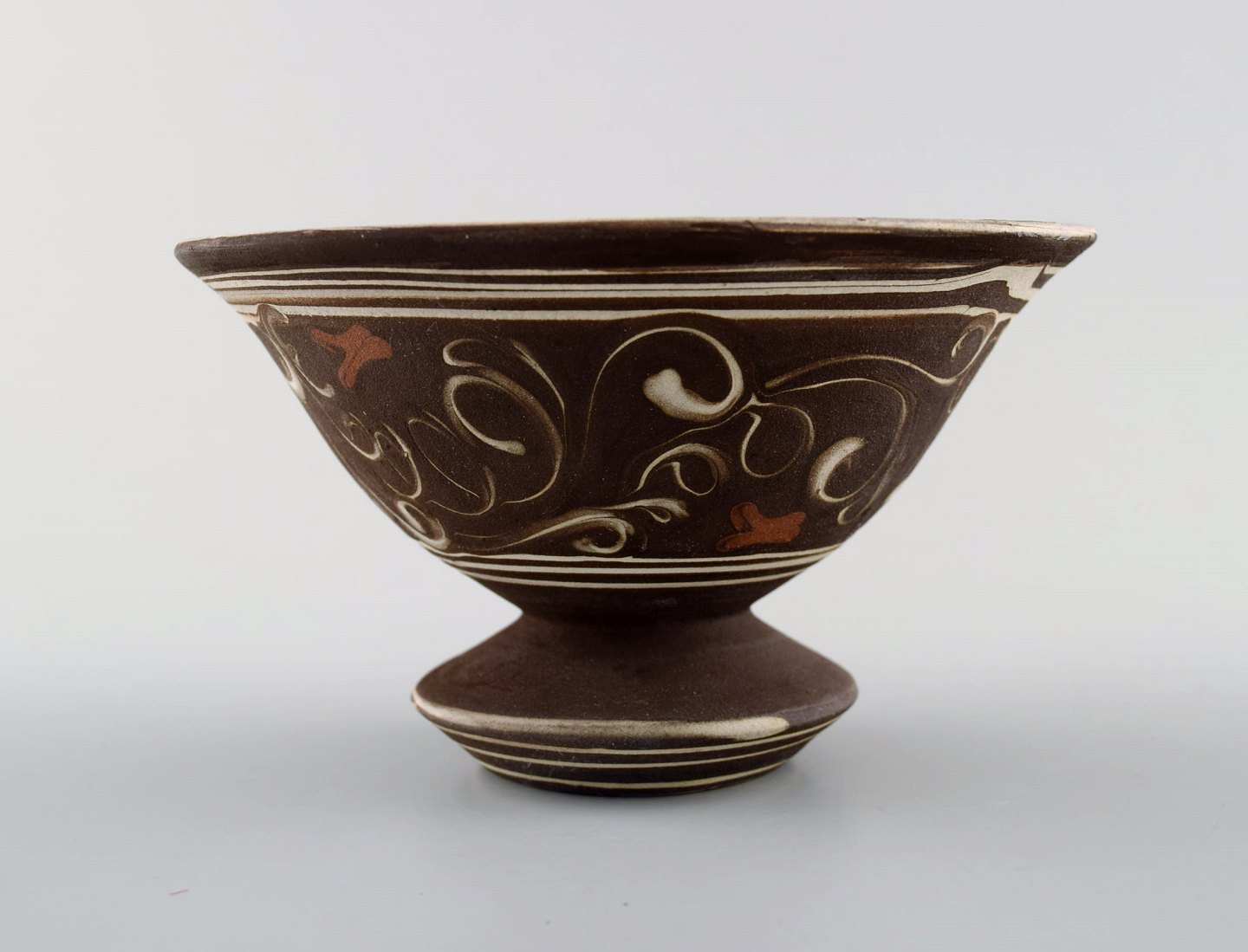 Kähler, HAK, glaseret stentøjsvase i moderne design. Sjælden form. 1930/40´erne. Kohornsteknik. Stemplet. Måler : 12 cm. x 7,5 cm. I perfekt stand.