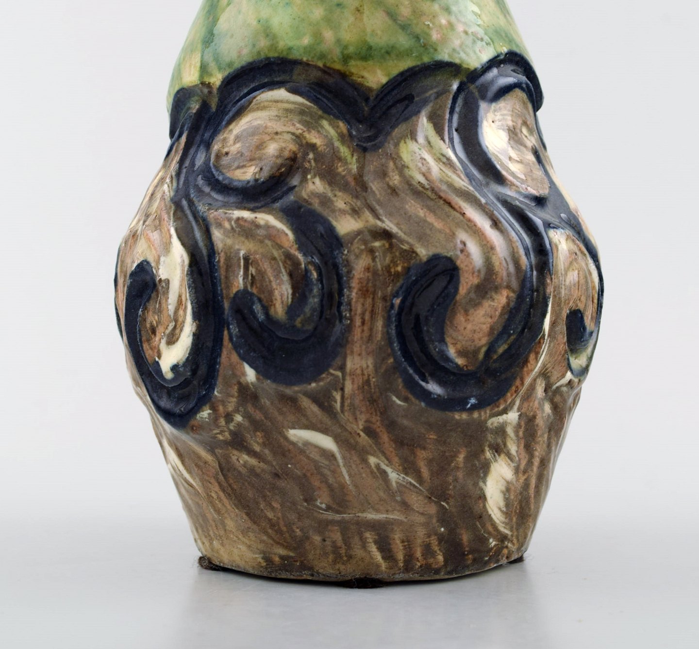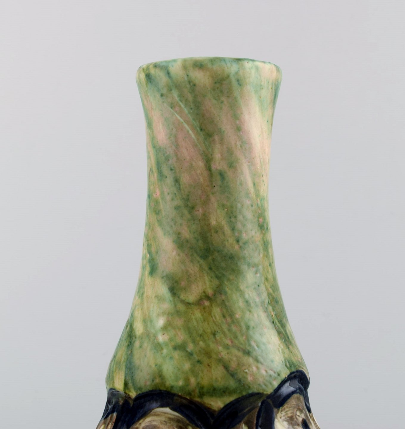 Møller & Bøgely, skønvirke stor keramikvase af glaseret keramik. Ca. 1920. Stort dansk privatsamling af Møller & Bøgely keramik på lager. Måler : 22 cm. x 10,5 cm. I perfekt stand.