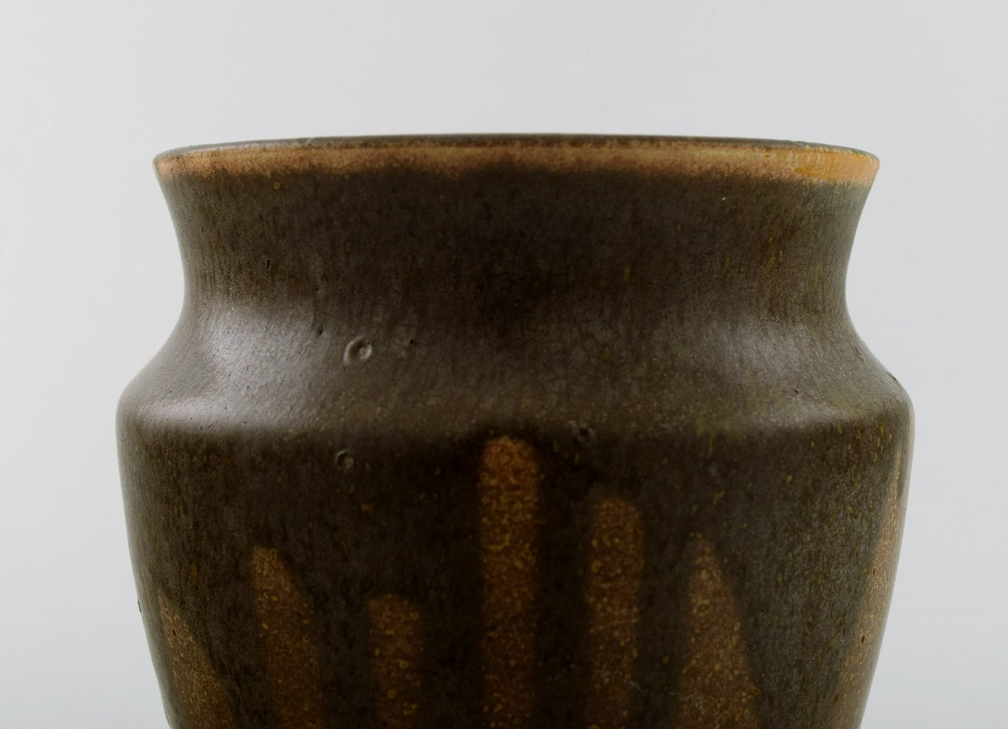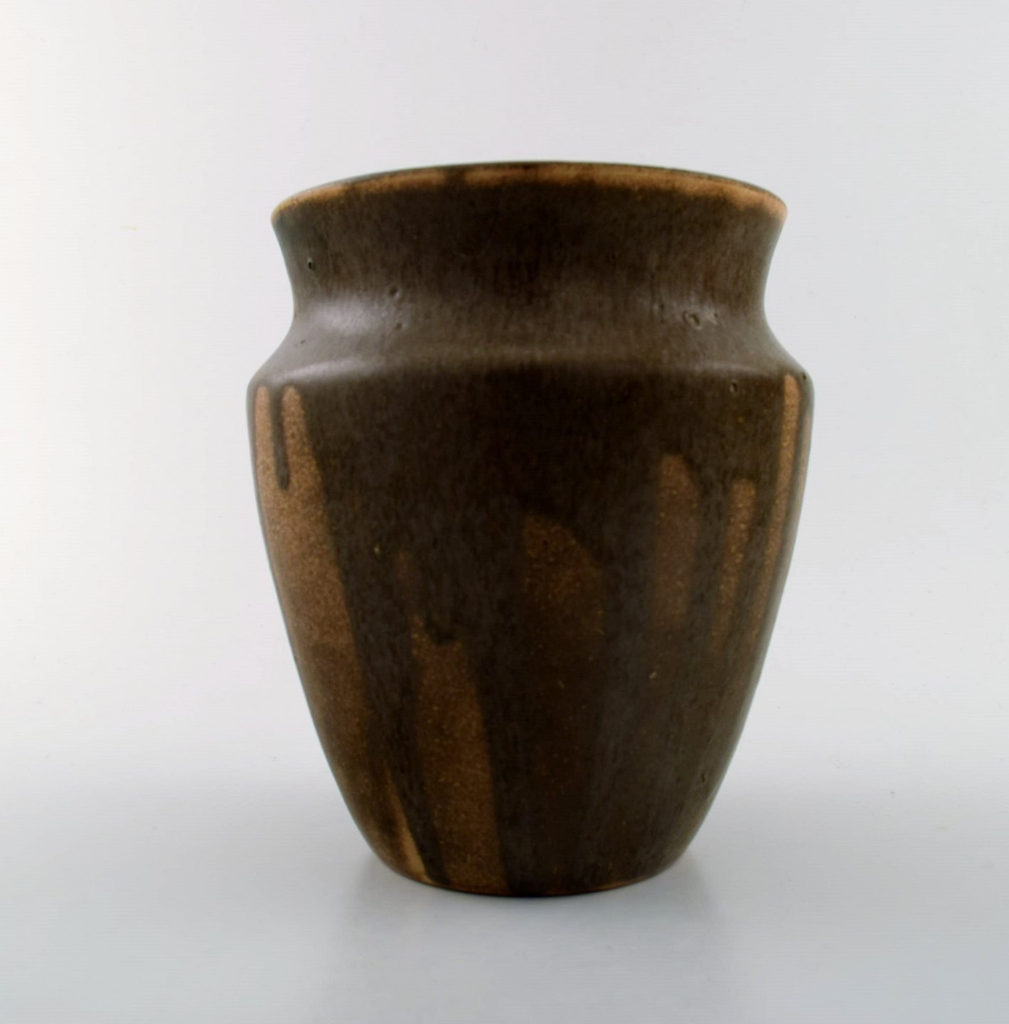 Patrick Nordstrøm. Unika keramik vase. Islev. Smuk glasur i jordfarver. Stemplet PN, Islev 1929. 15,5 cm. høj. Diameter 14 cm. Perfekt stand.