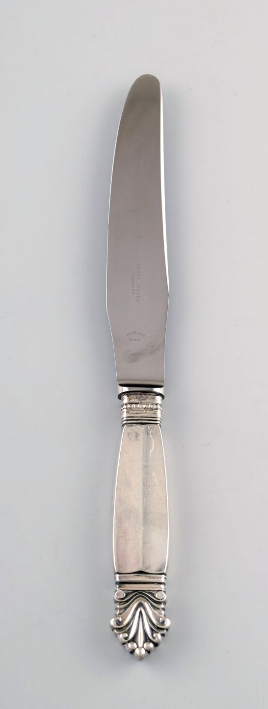 5 Georg Jensen Dronning Sterling Sølv, middagsknive med kort skaft. Måler 23 cm. Stemplet. I flot stand.