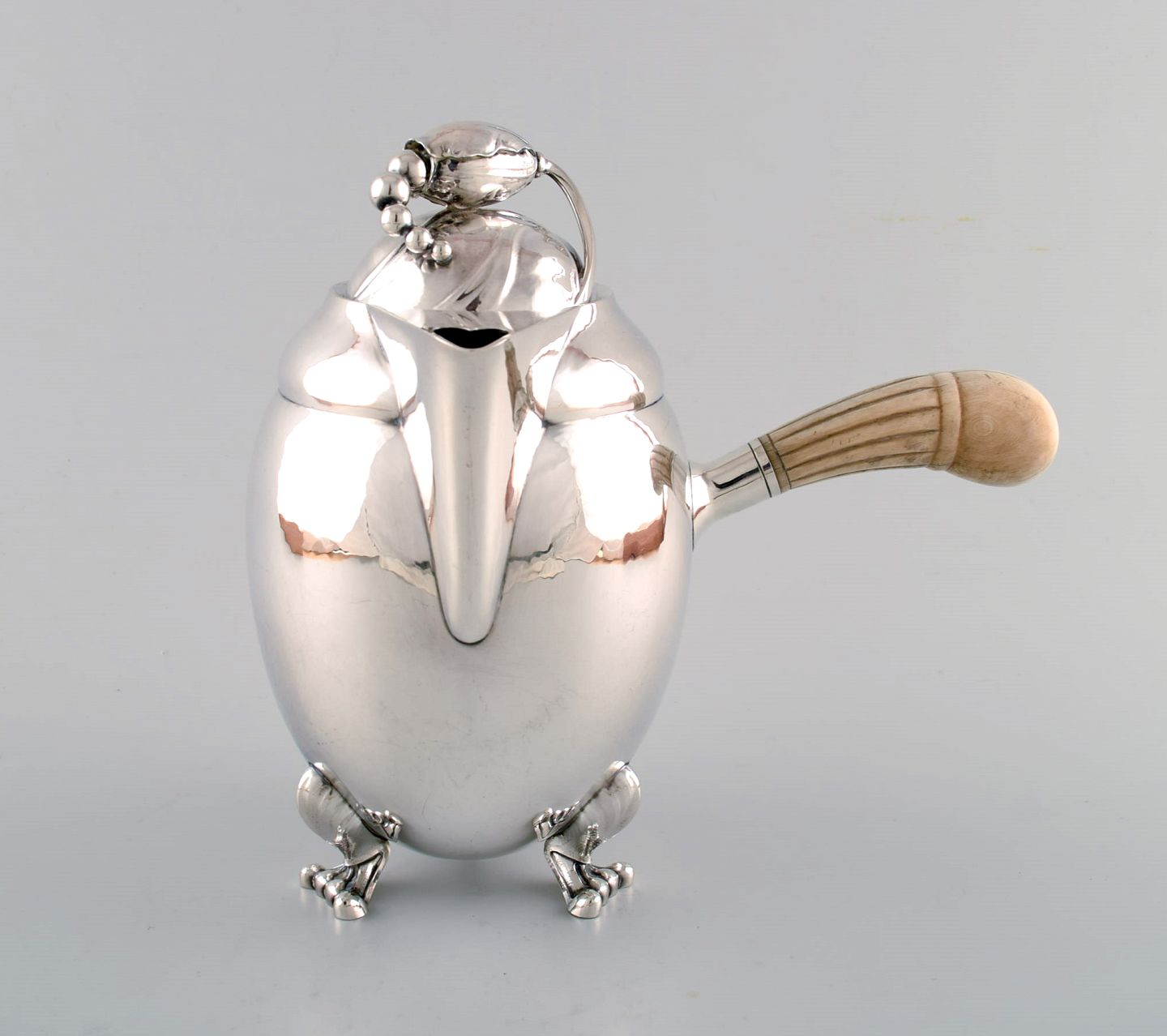 Rare Georg Jensen sterling silver Blossom chocolate pot number 2D. 22 cm height. In very good condition. Stamped after 1945.