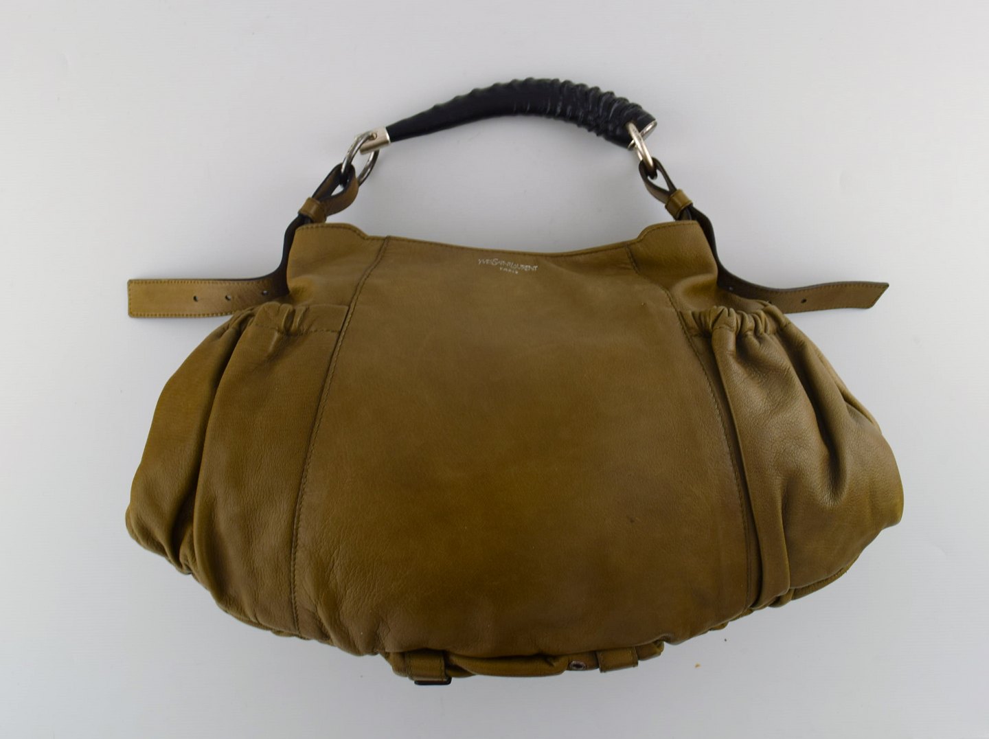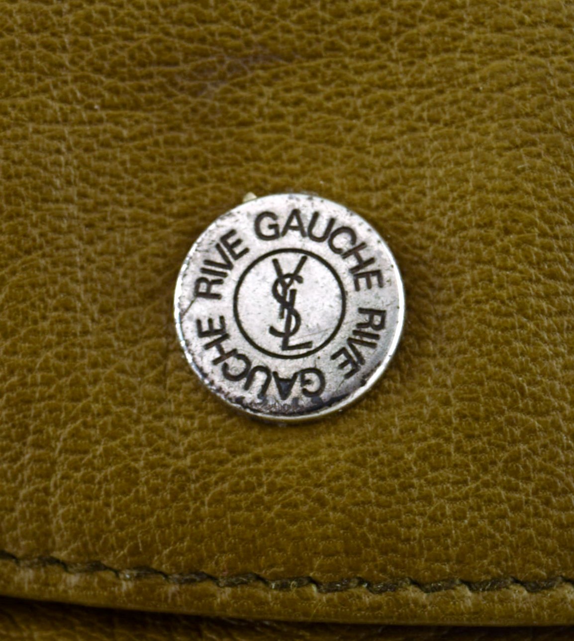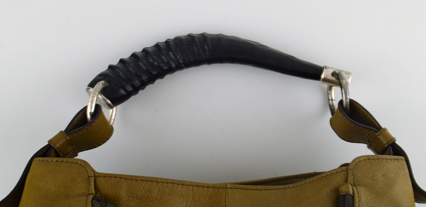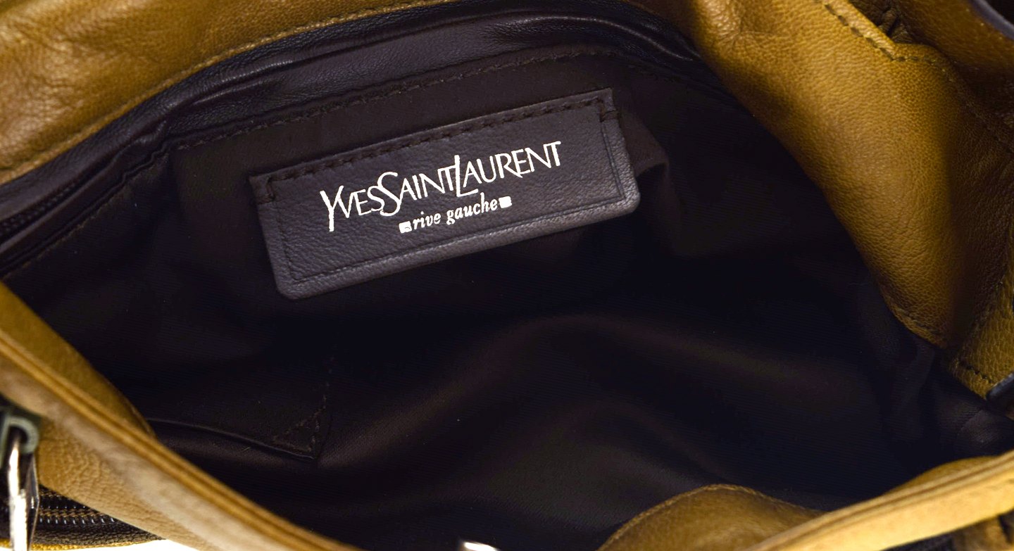 Vintage Women's YSL YVES SAINT LAURENT RIVE GAUCHE Olive Brown Leather Hand Bag. 1960/70 s. 100% Authentic. Measures : 43 cm. x 27 cm. In good vintage condition.