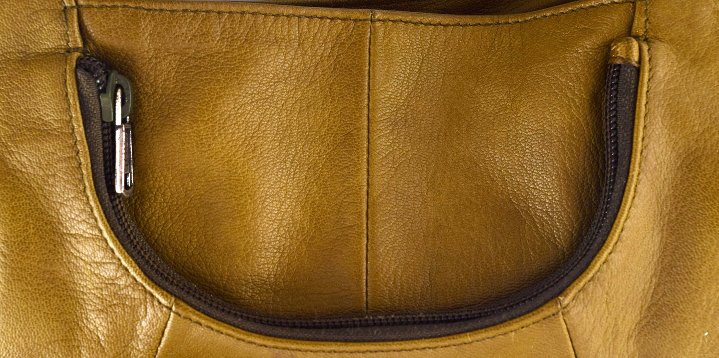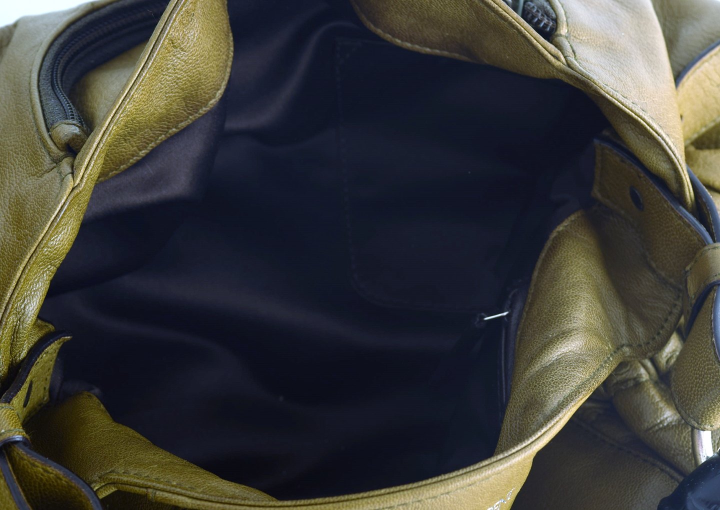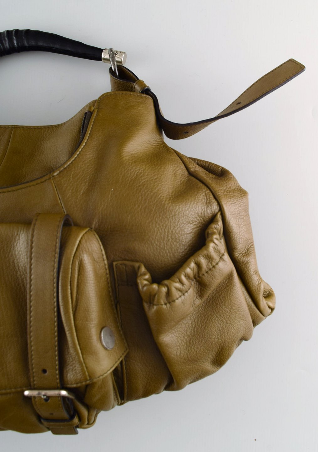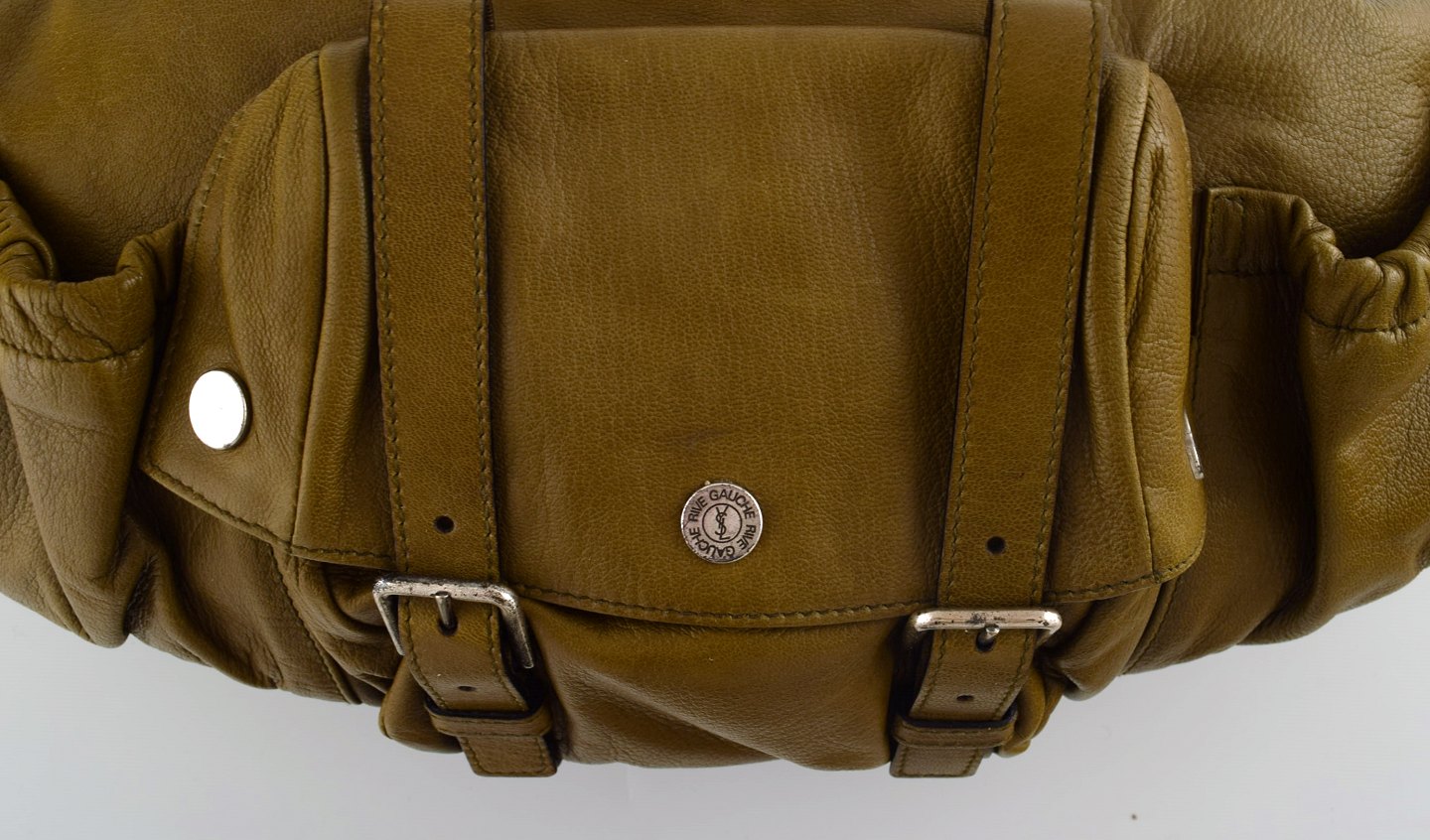 Vintage Women's YSL YVES SAINT LAURENT RIVE GAUCHE Olive Brown Leather Hand Bag. 1960/70 s. 100% Authentic. Measures : 43 cm. x 27 cm. In good vintage condition.