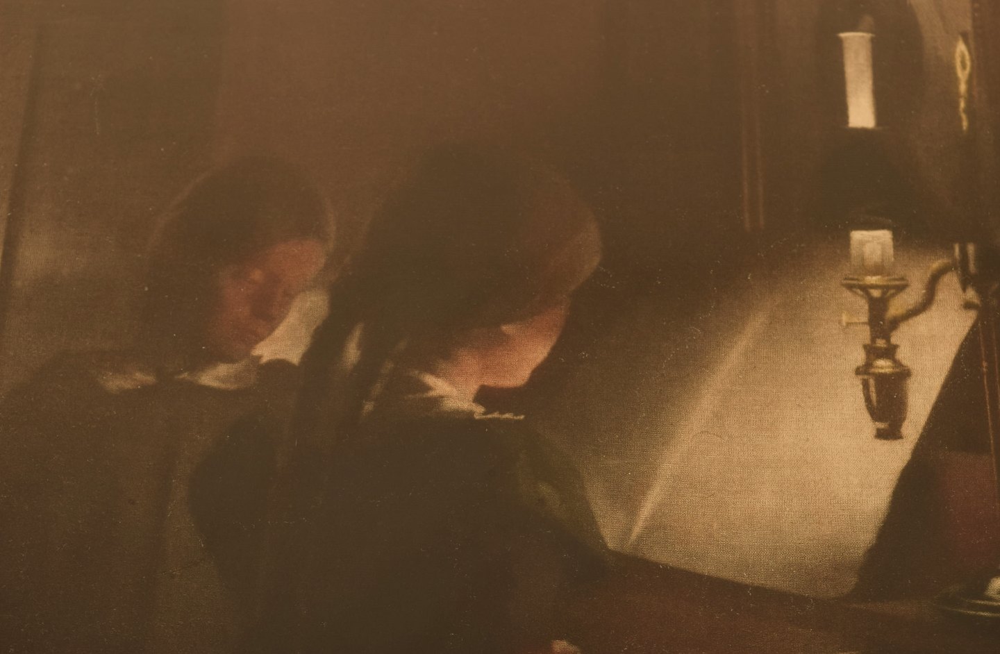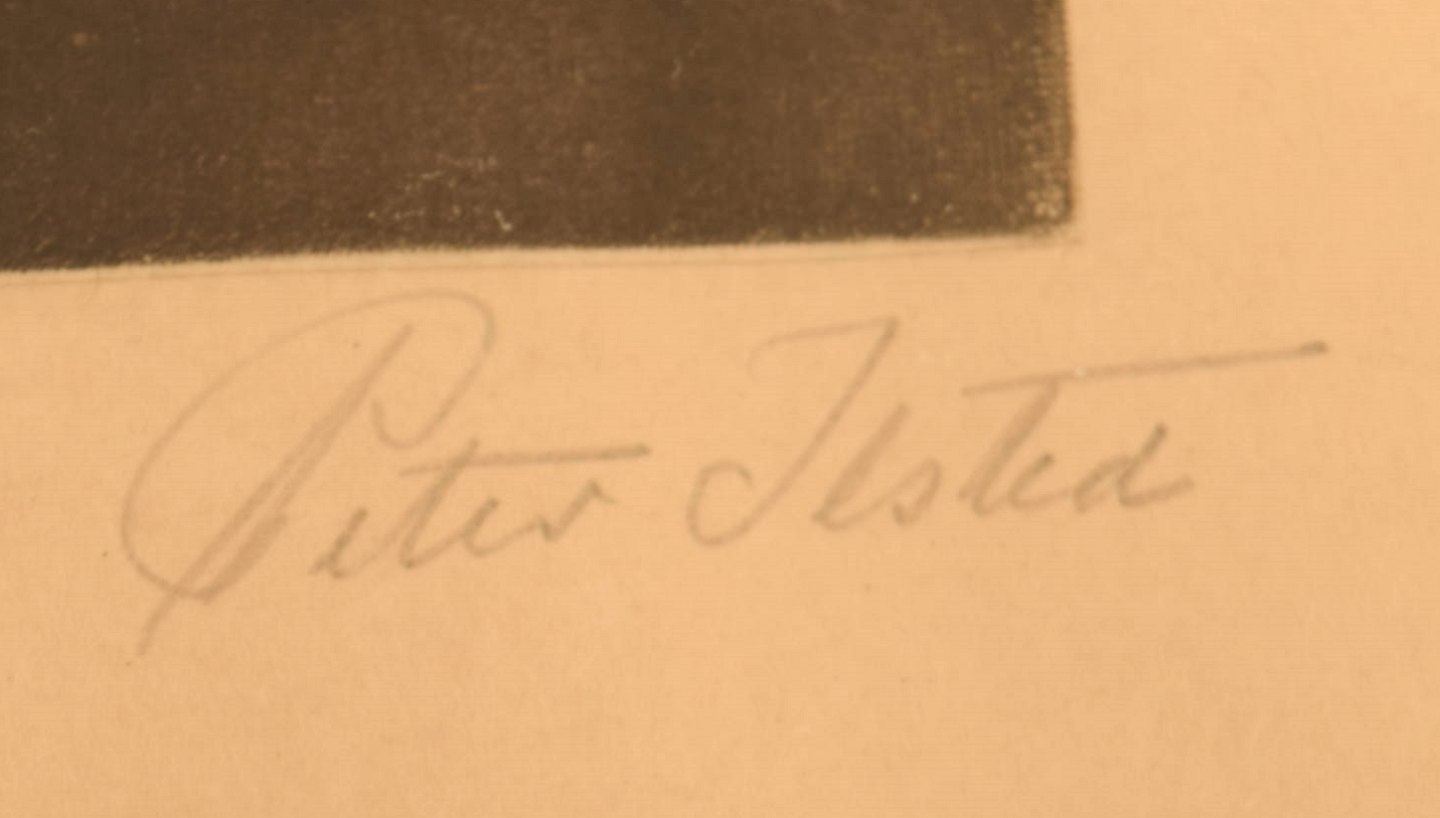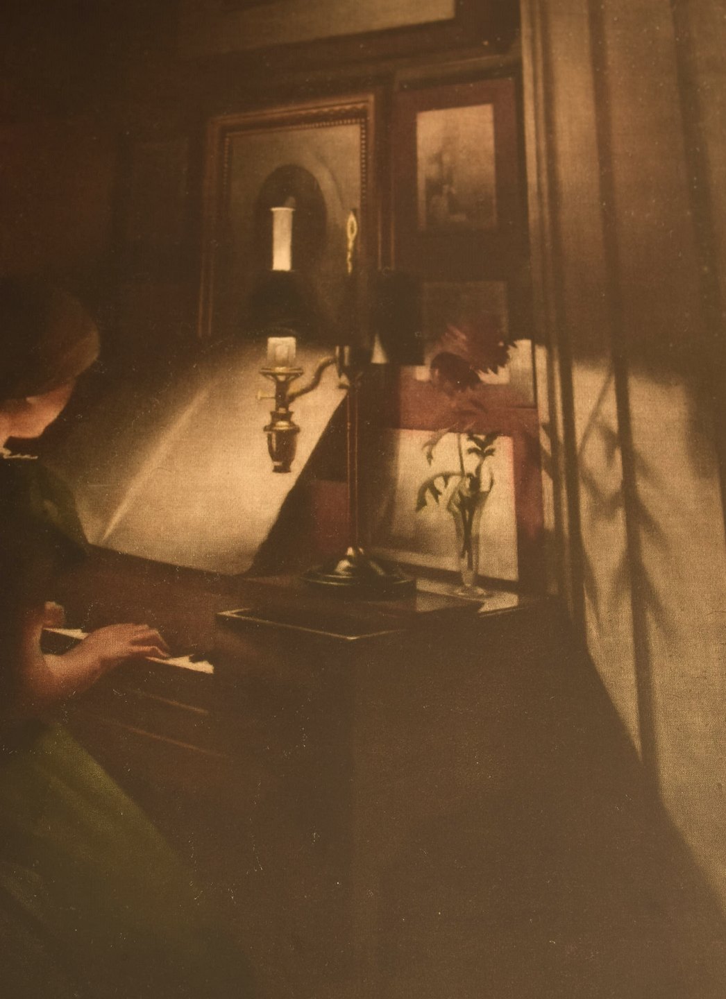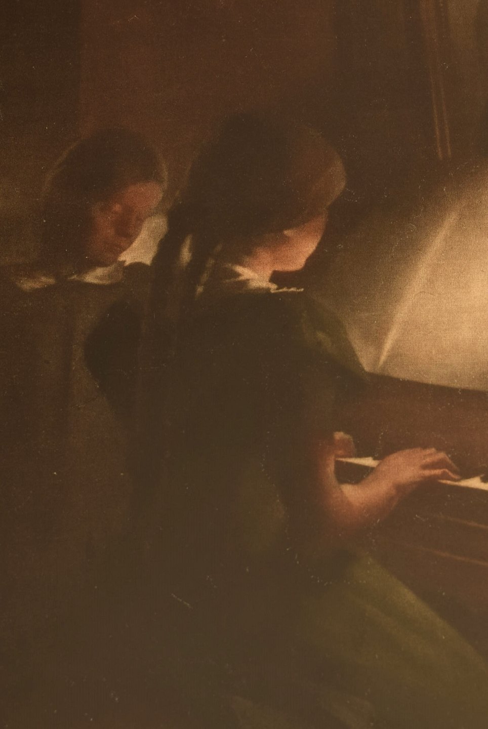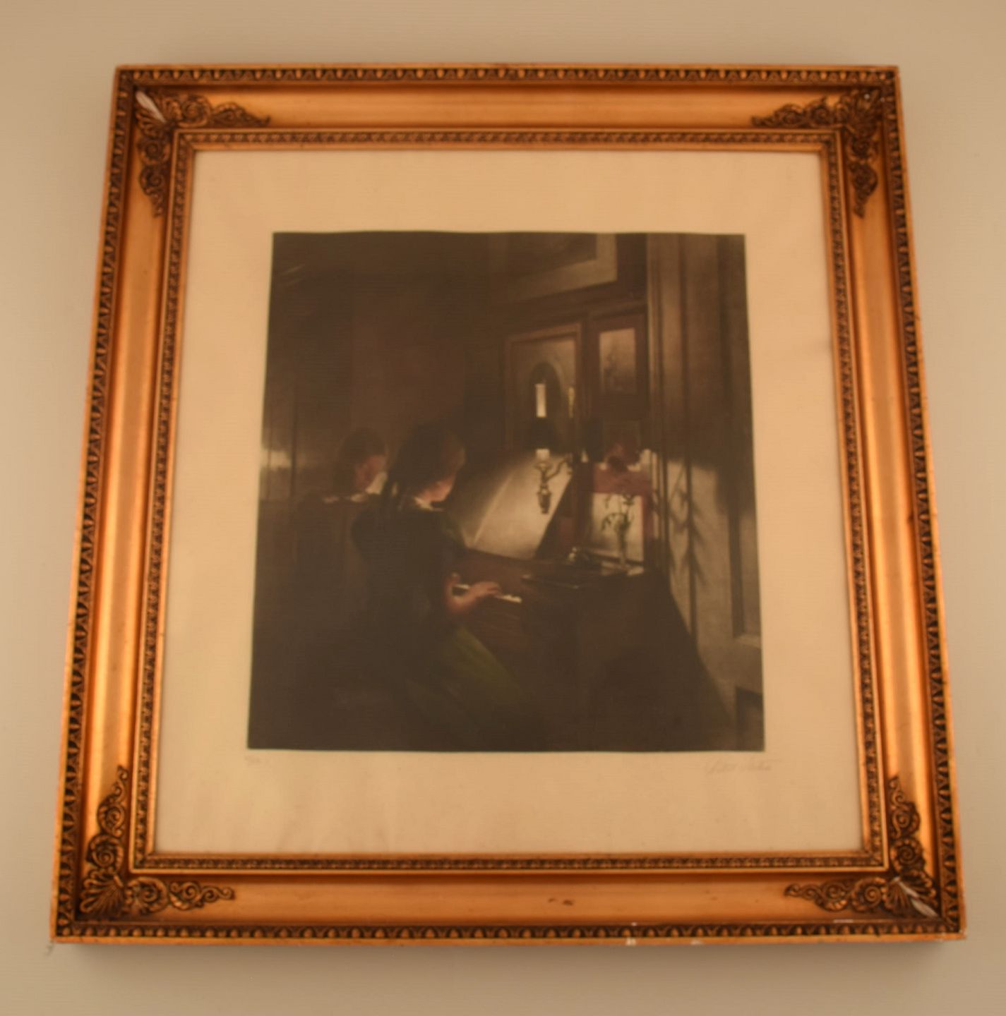 Peter Ilsted: Interior with two girls at the piano. Signed Peter Ilsted. Mezzotint in colours.
