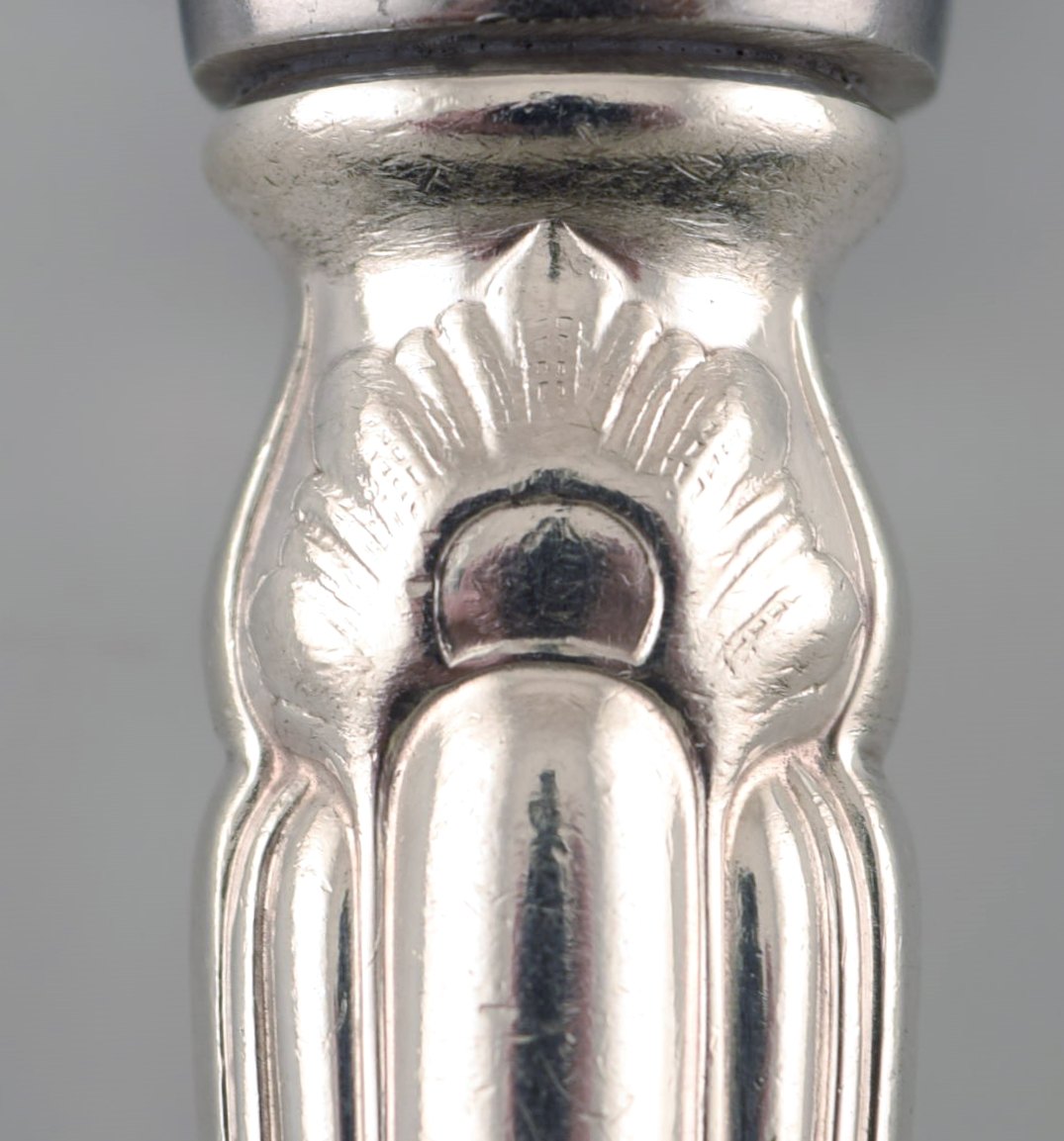 Sæt på tolv Cohr Herregaard/Herregård middagskniv, bestik af tretårnet sølv.