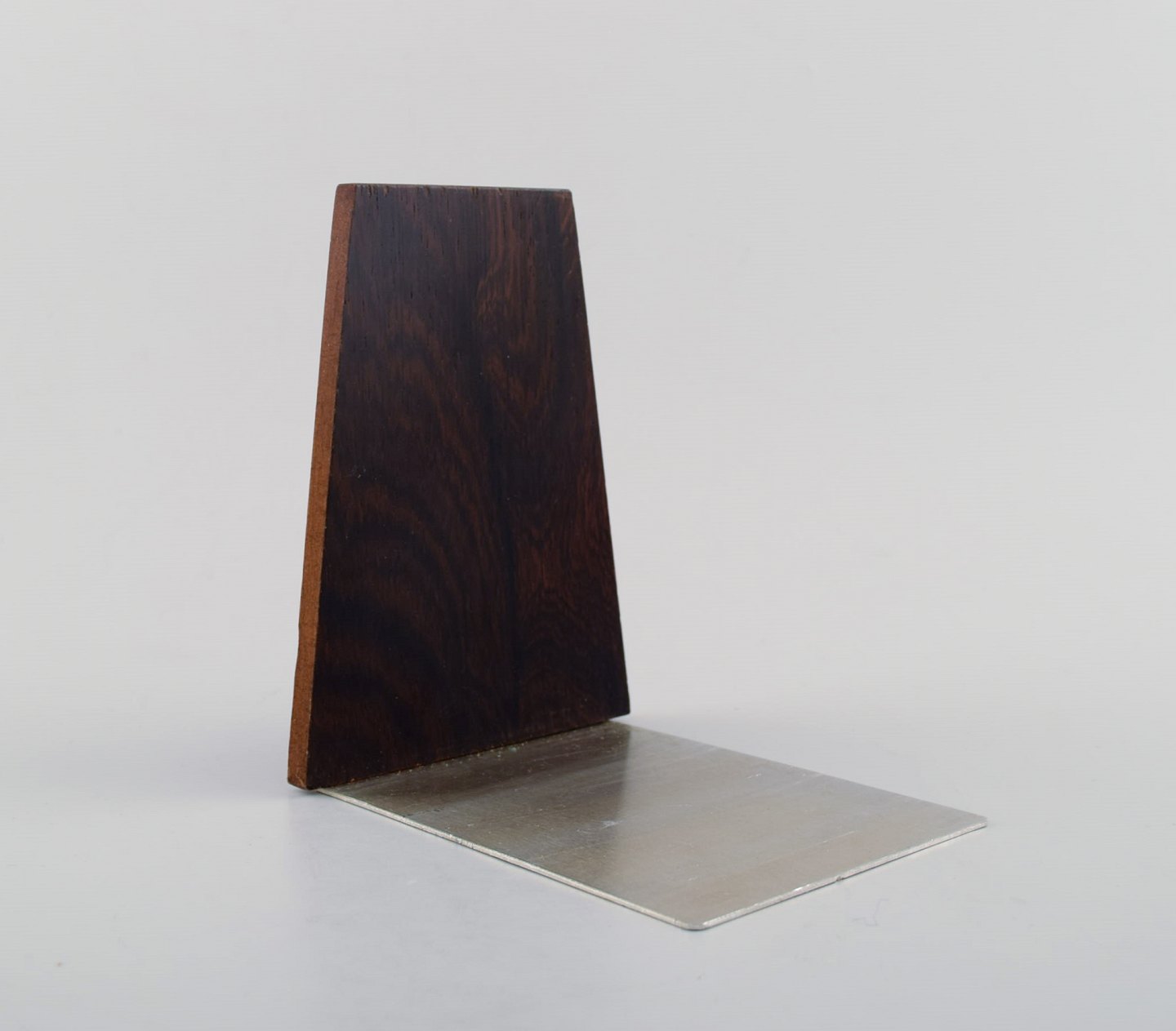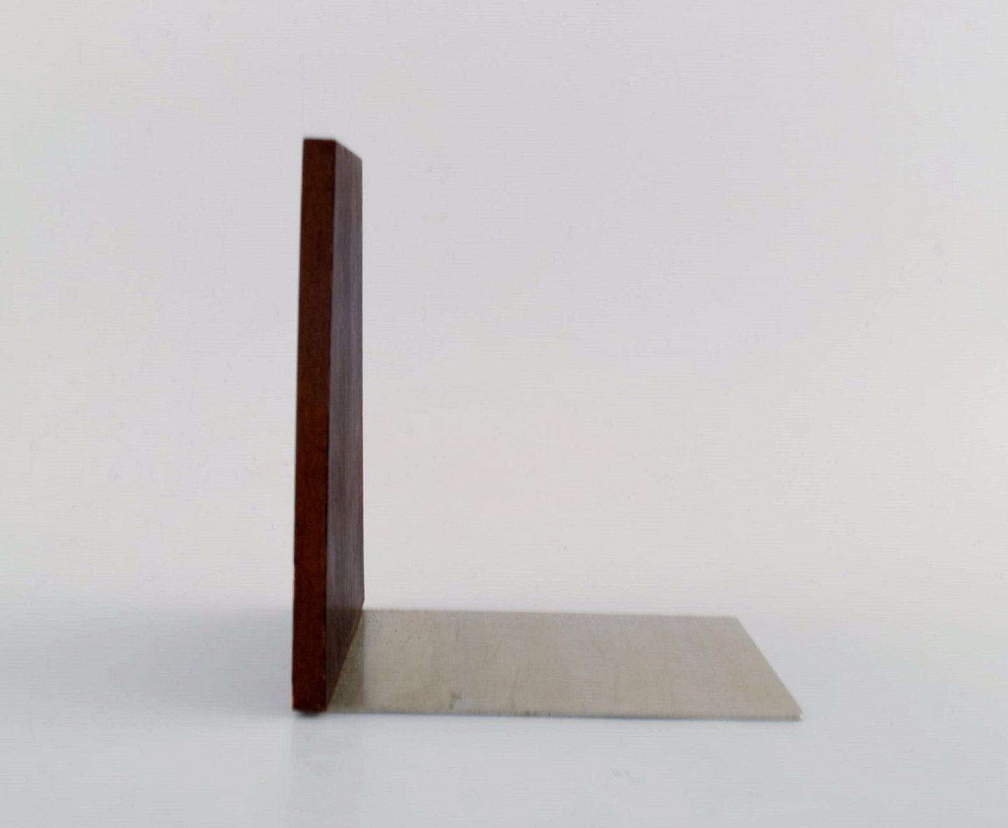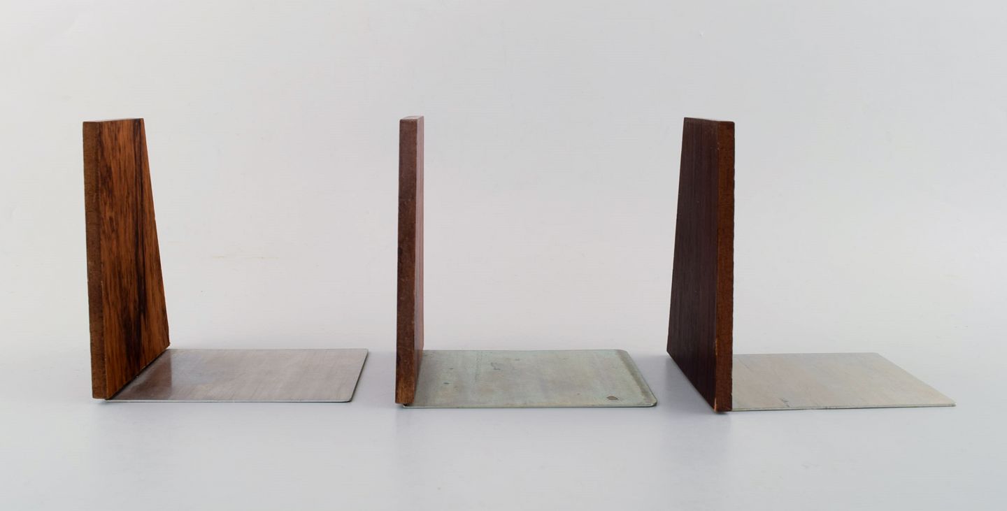 Dansk design : Tre stilrene bogstøtter i teak og rustfrit stål. Flot stand med fin patina. Måler: 11,5 cm. x 8,5 cm.