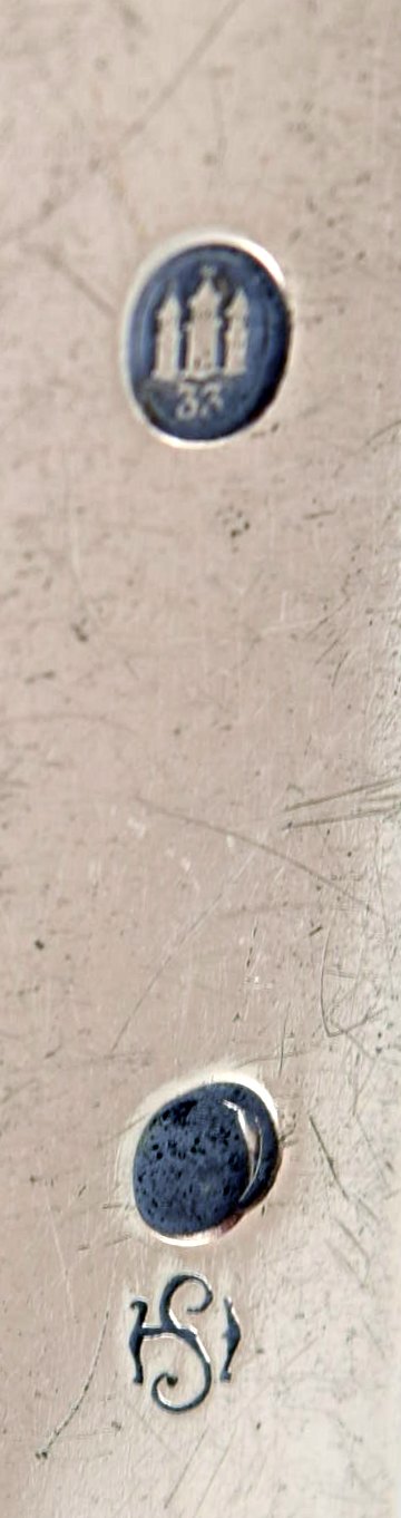 Horsens Sølvvarefabrik: "Funkis III". Marmeladeske. Bestik af tretårnet sølv 1933. Måler 13,5 cm. Stemplet. I flot stand.