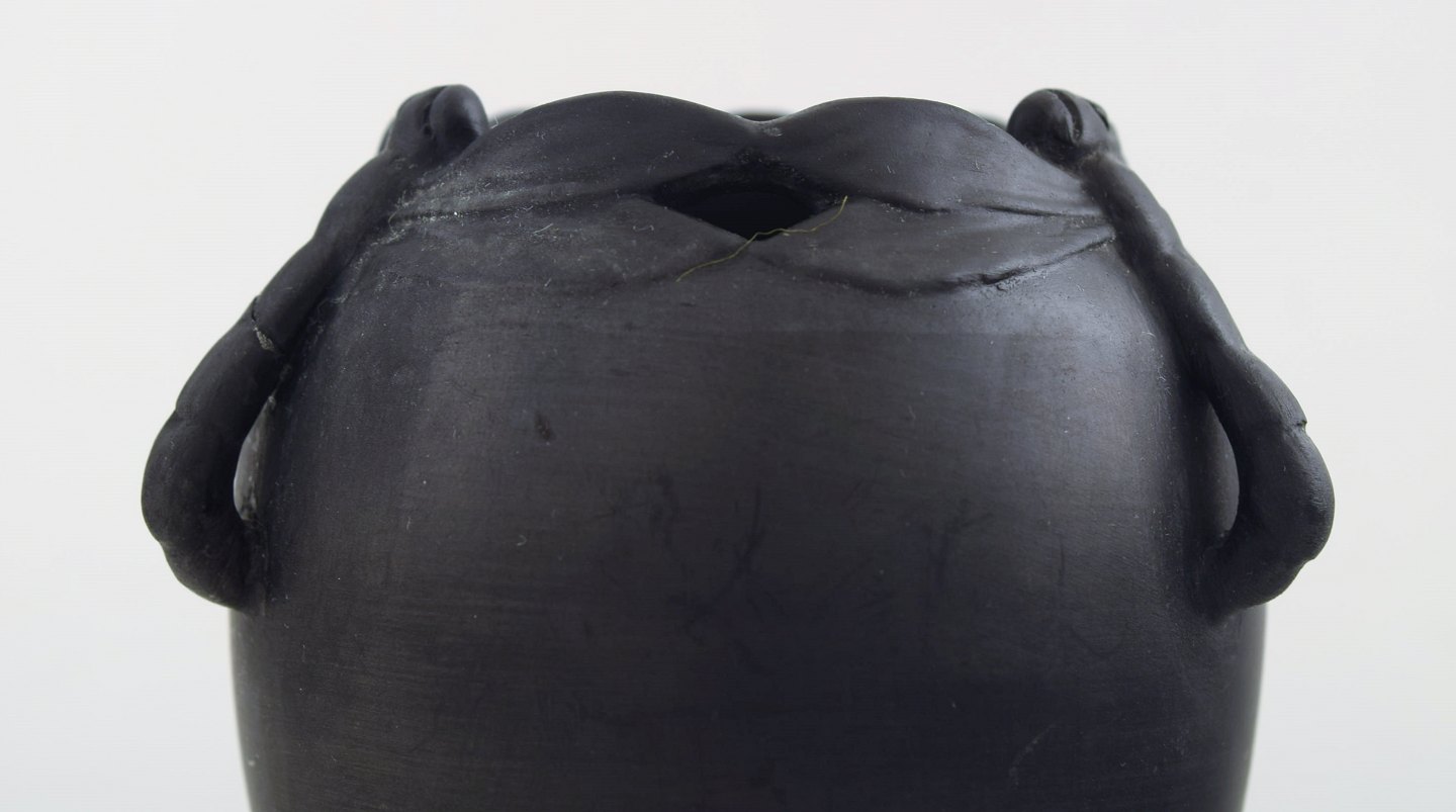 Hjorth skønvirke terracotta vase. Ca. 1890´erne. Måler : 10 cm x 9,5 cm. I perfekt stand. Stemplet. Modelnummer 796