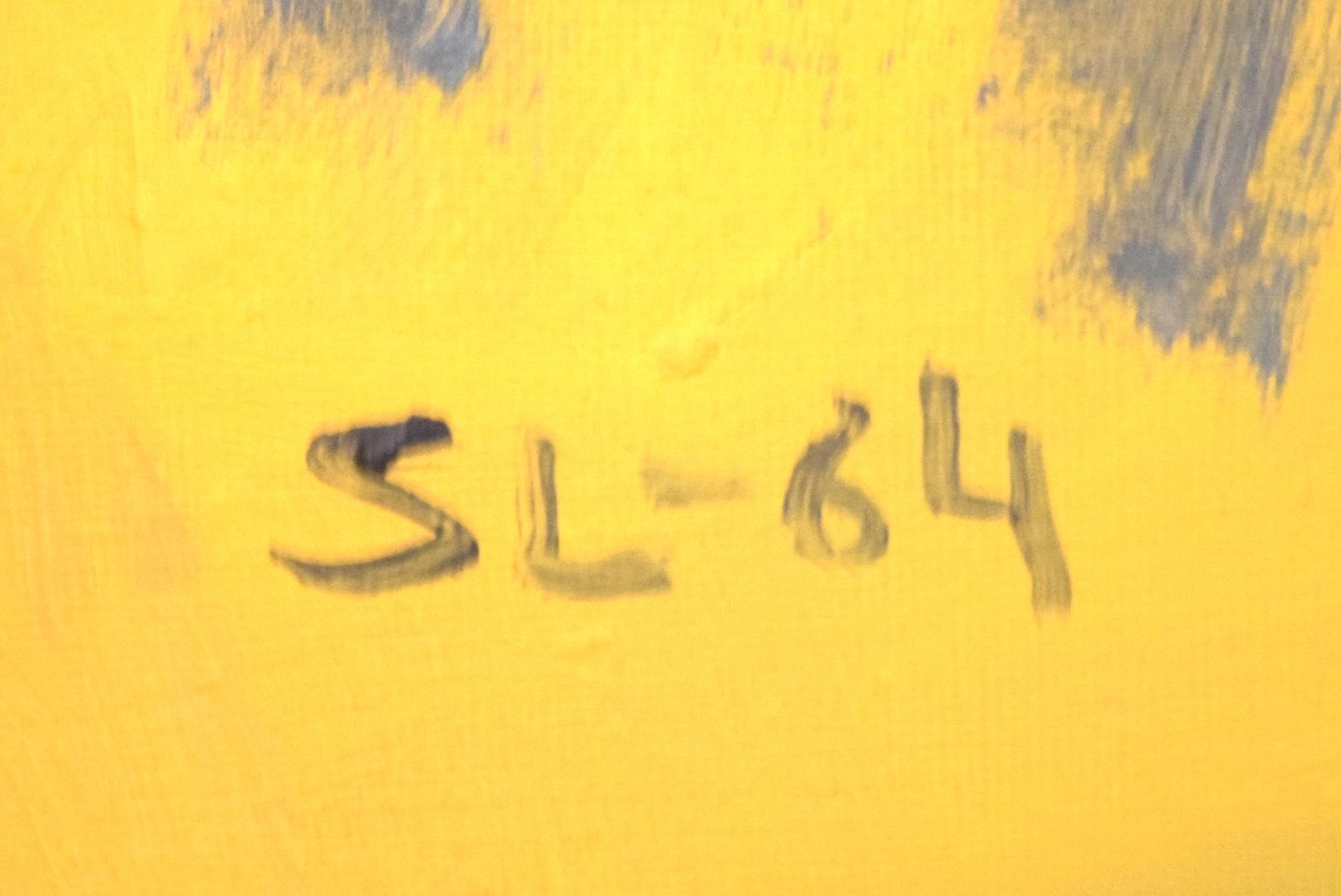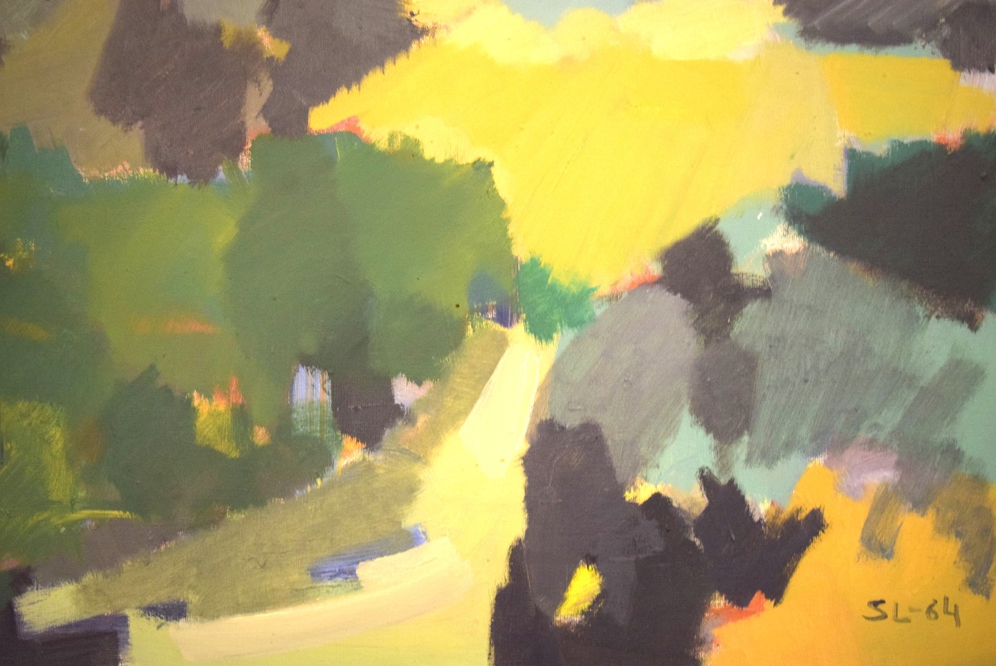 Skandinavisk modernist. Koloristisk landskab. Olie på lærred. 1964. Signeret: SL-64 Måler: 54 cm x 45 cm. Rammen måler: 6 cm. I flot stand.