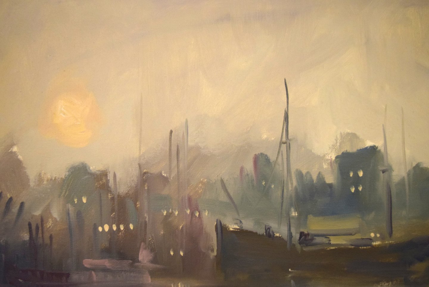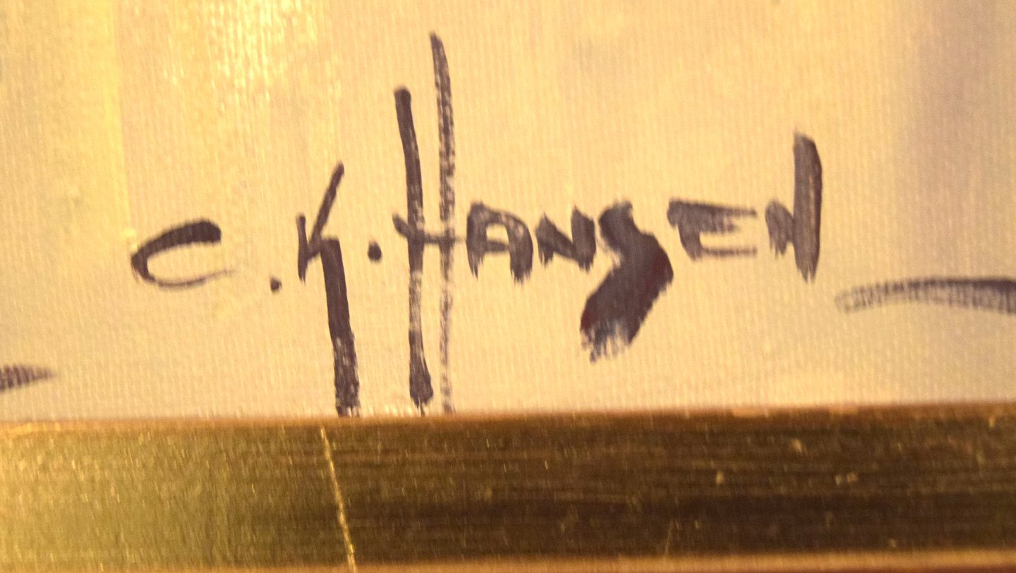 Carlo Knud Hansen. Danmark. Olie på lærred. Havnemotiv. Signeret: C.K. Hansen. Måler: 61 cm x 50 cm. Rammen måler: 10 cm. I flot stand.