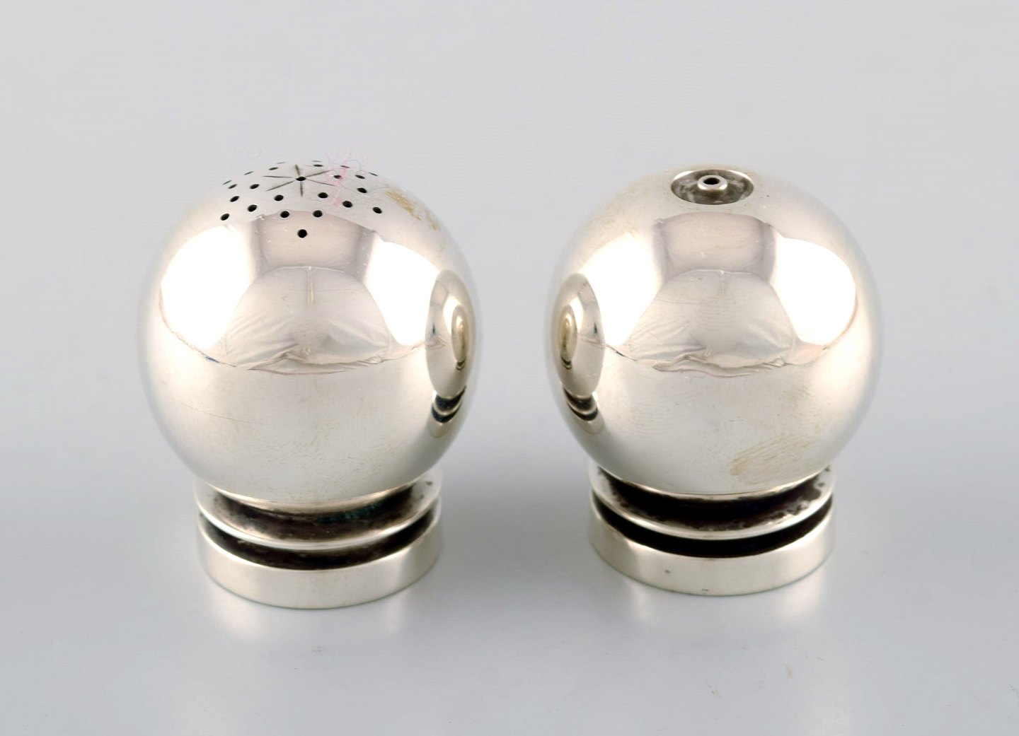 Georg Jensen Pyramide art deco salt & peber sæt i sterlingsølv. Tegnet af Harald Nielsen (1892-1977) år 1930. Måler: 4,7 cm x 4 cm. Tidligt stempel: 1933-1945 I flot stand.