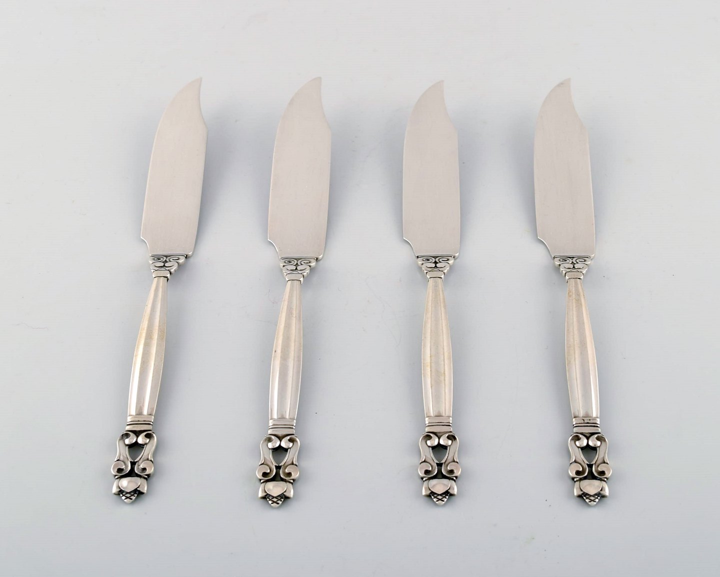 Georg Jensen "KONGE" sæt på fire fiskeknive i sterlingsølv.