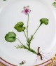 Tidlig Royal Copenhagen. 'Flora Danica' kagetallerken af porcelæn, dekoreret med blomster i farver og guld.