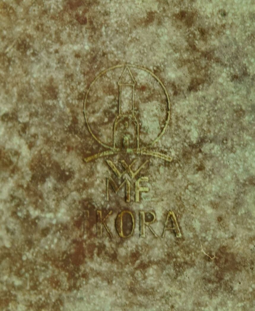 Art Deco vase, grønpatineret bronze med gulddekoration "Ikora" WMF (Württembergische METALLWARENFABRIK) I flot stand. Måler : 25,5 cm. x 14 cm. Stemplet.