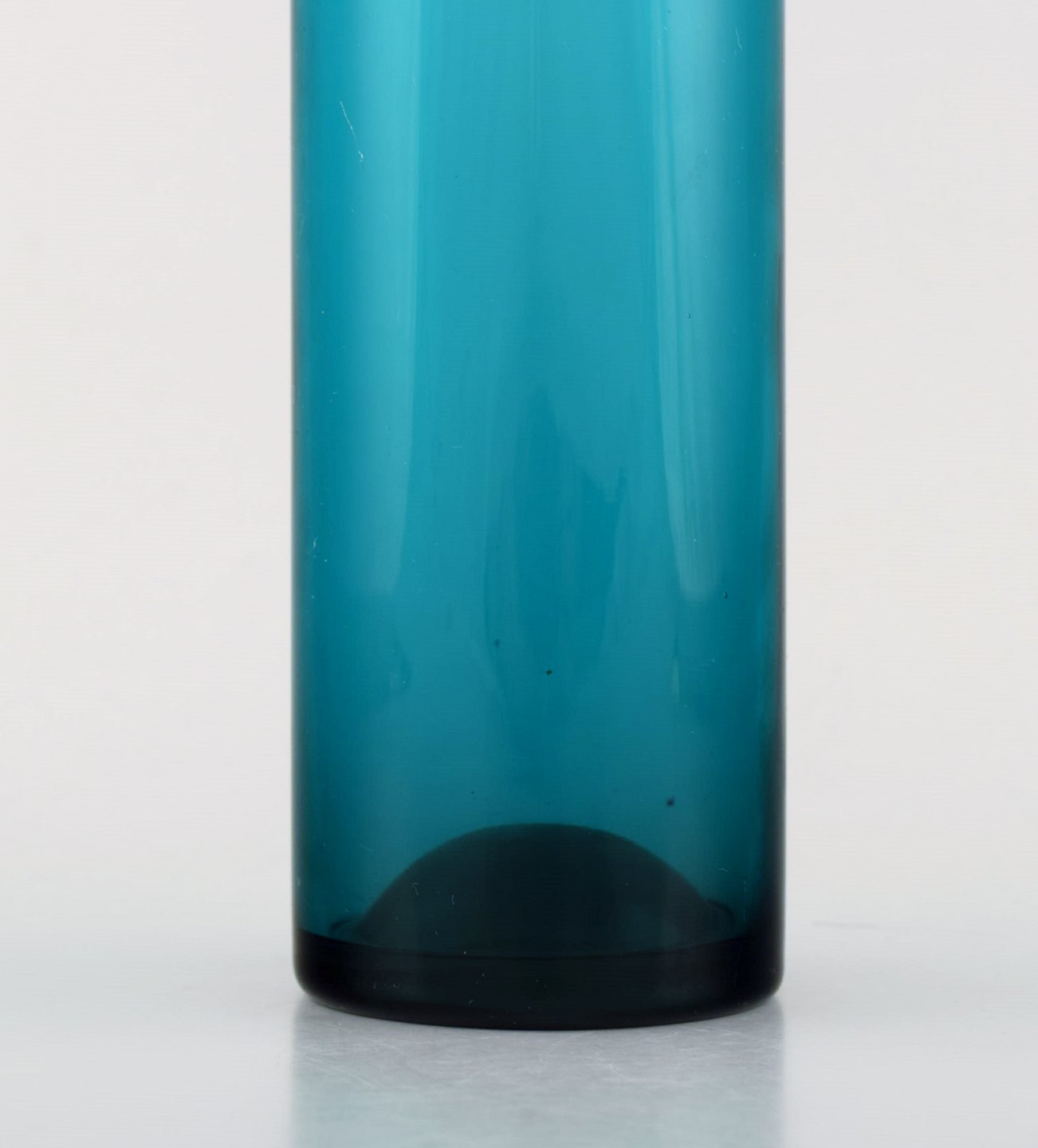 Nanny Still for Riihimäen Lasi, finsk glaskunst dekorationsflaske, vase/kande. I perfekt stand. Smuk blå farve. 1960/70´erne. Måler 30 cm. Stemplet.