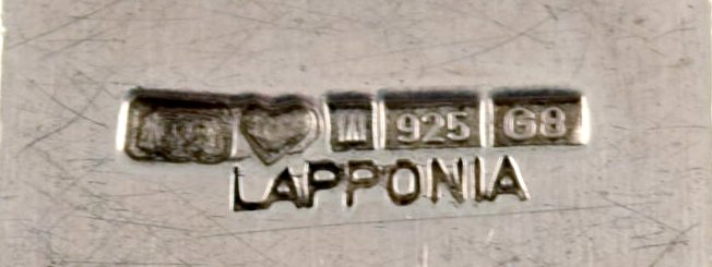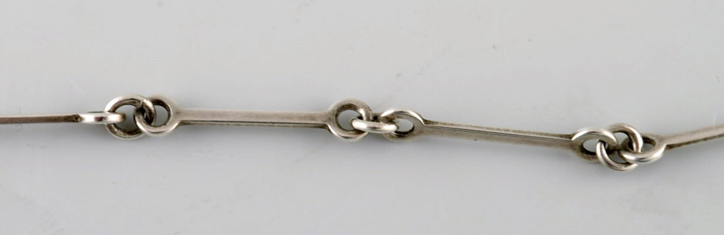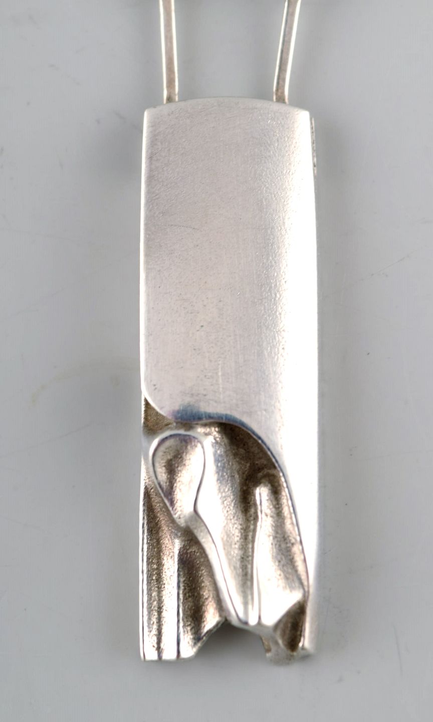Lapponia. Halskæde med vedhæng af sterlingsølv, organisk form. 1984. Måler: Kæde: 41 cm. Vedhæng: 4,2 cm x 1,4 cm. Stemplet: Lapponia, 925, G8: 1984. I flot stand.