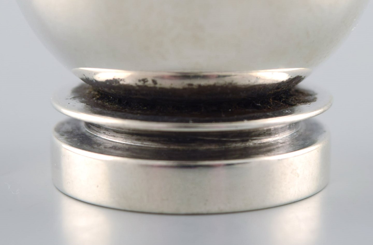 Georg Jensen "Pyramid" art deco salt & pepper set in sterling silver. Designed by Harald Nielsen (1892-1977) in 1930. Measures: 4.7 cm x 4 cm. Early stamp: 1933-1944 In very good condition.