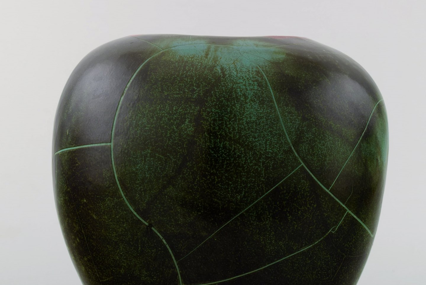 Keramikvase, smuk krakeleret glasur i grønne nuancer.