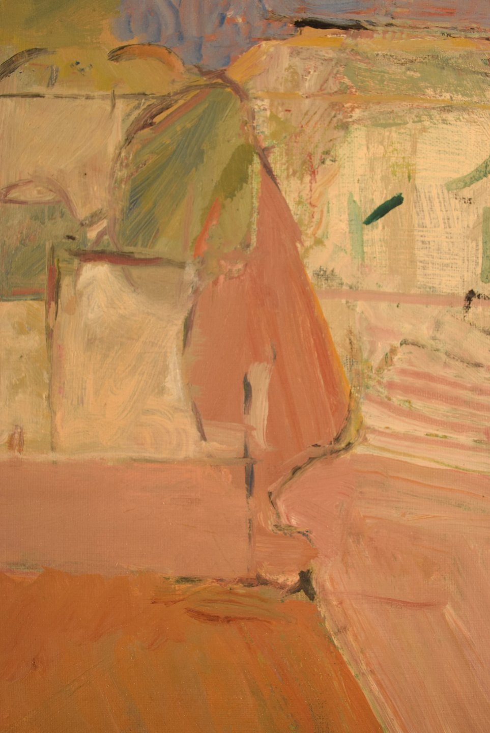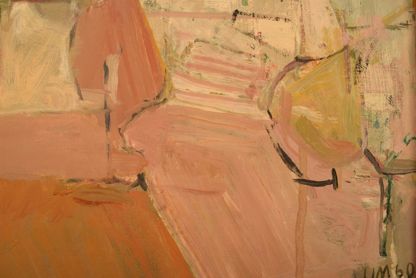 Ulla Malm, f. 1930. Finsk kunstner. Olie på lærred. Modernistisk bymotiv. Signeret og dateret, 1960. I flot stand. Lærredet måler: 30 cm x 27 cm. Rammen måler: 6,5 cm.