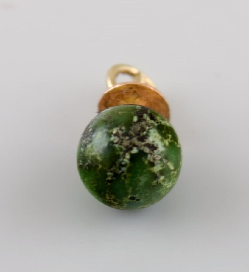 Danske 14K guld ørestikker med grønne sten. Midt 1900-tallet. I flot stand. Stemplet. Måler: 13 mm x 7 mm.