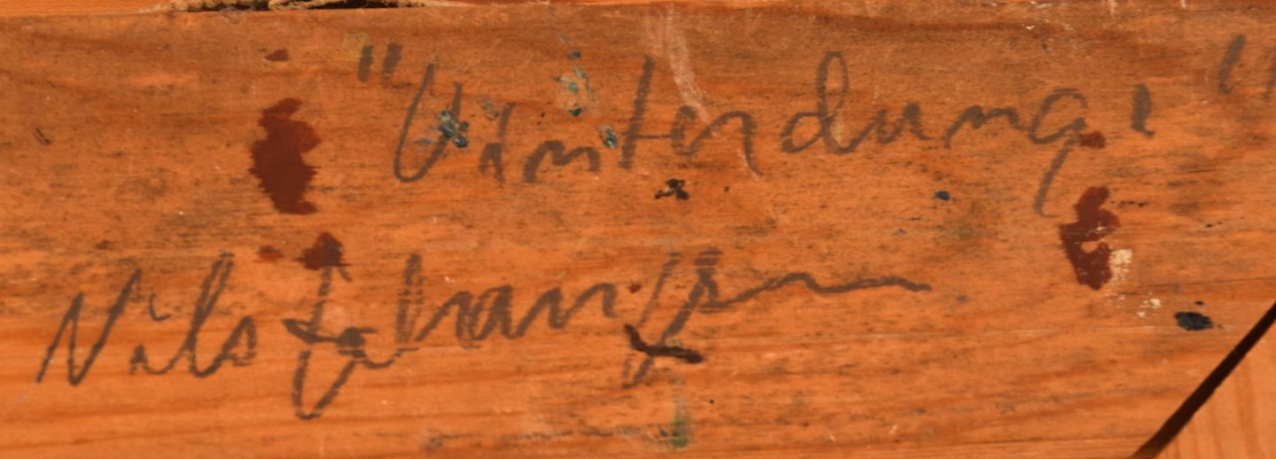 Nils Johansson. Svensk kunstner. Olie på lærred. Vinterlandskab. I perfekt stand. Lærredet måler: 49 cm x 42 cm. Rammen måler: 1,5 cm. Signeret. 1960erne.