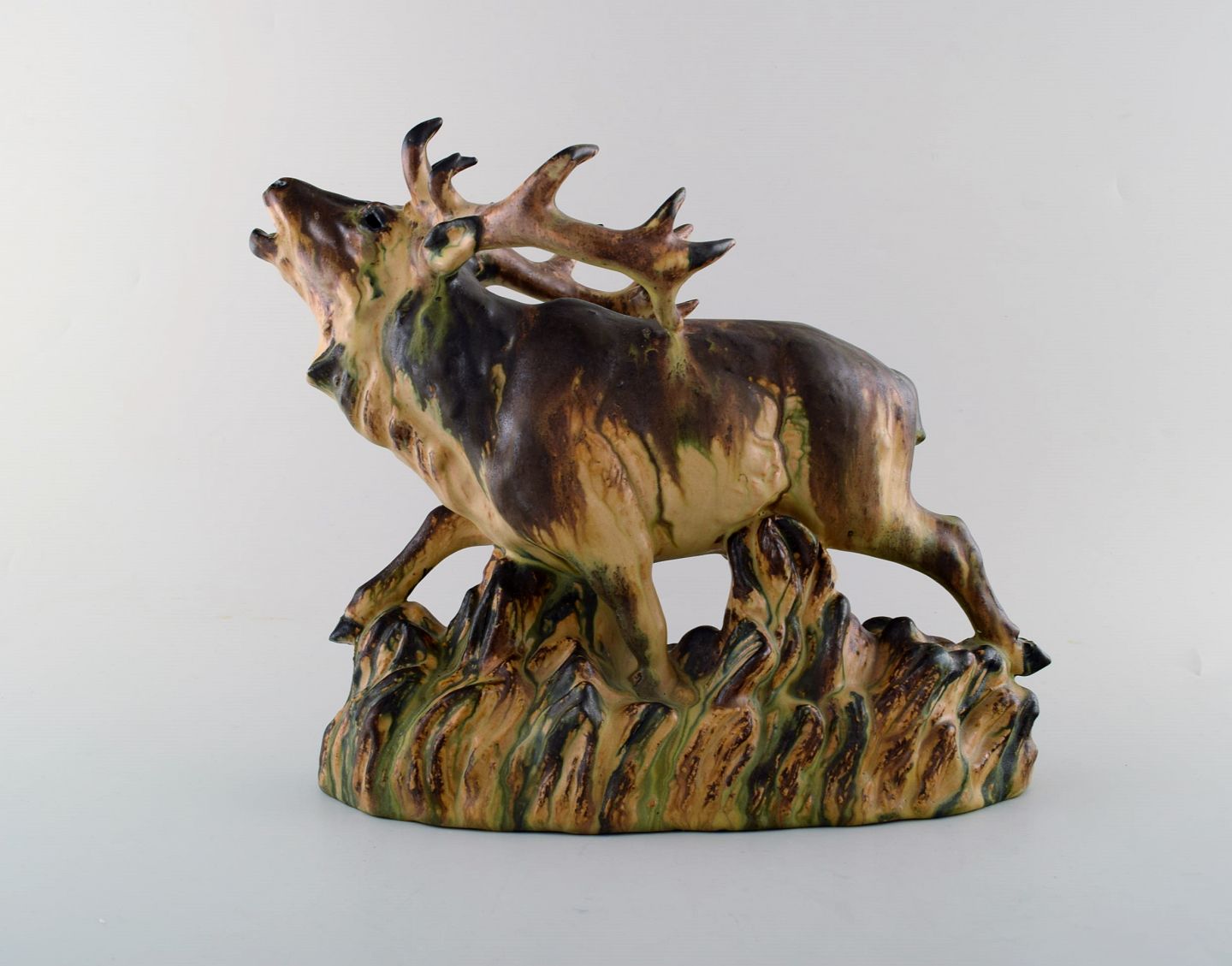 Stor Arne Ingdam keramikfigur. Brølende kronhjort. I perfekt stand. Stemplet. Måler 33 cm x 24,5 cm.