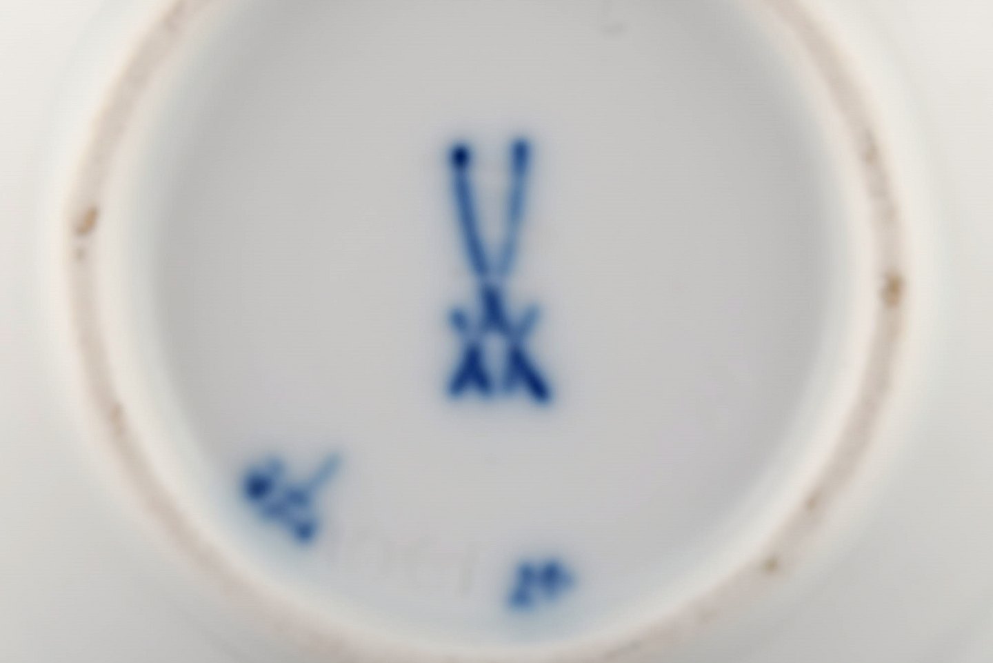 Et par Meissen løgmønstret kaffekopper med dertil hørende underkopper, ca 1920erne. I perfekt stand. 2. Sortering. Kop måler: 8,5 x 6,5 cm. Underkop måler: 13,5 x 3,5 cm Stemplet.