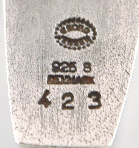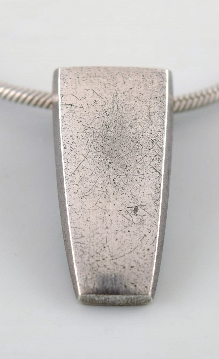 Ragnar Jørgensen for Georg Jensen. Modernistisk "Victory" halskæde i sterlingsølv. Modelnummer 423. I flot stand. Stemplet. Total længde: 42 cm. Vedhænget måler: 2,2 x 7 cm.