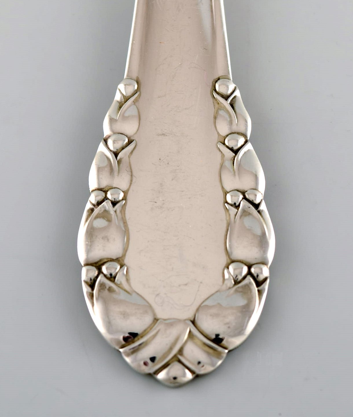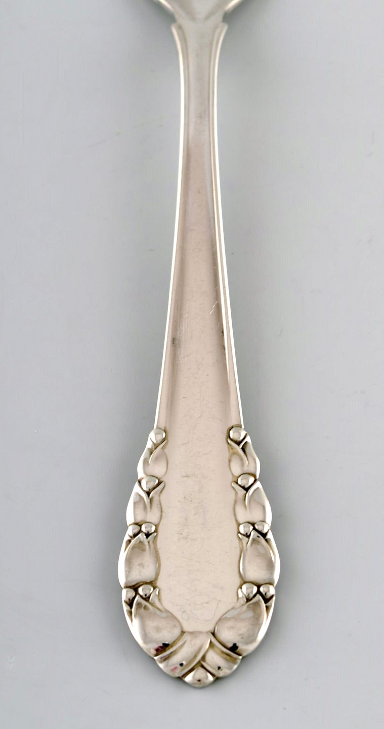 Georg Jensen "Liljekonval" middagsgaffel i sterlingsølv. Måler 19,2 cm. I flot stand. Stemplet. Tegnet af Georg Jensen i 1913.