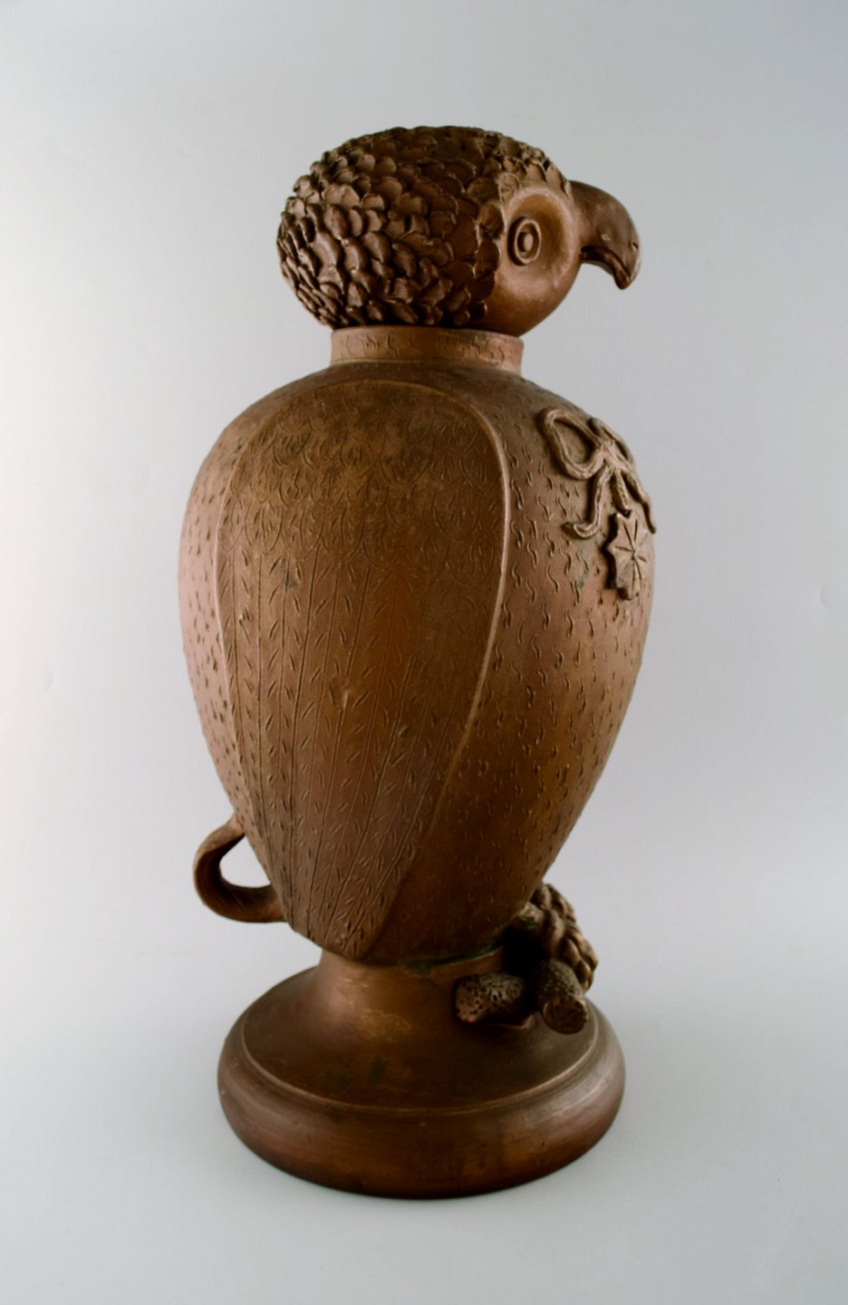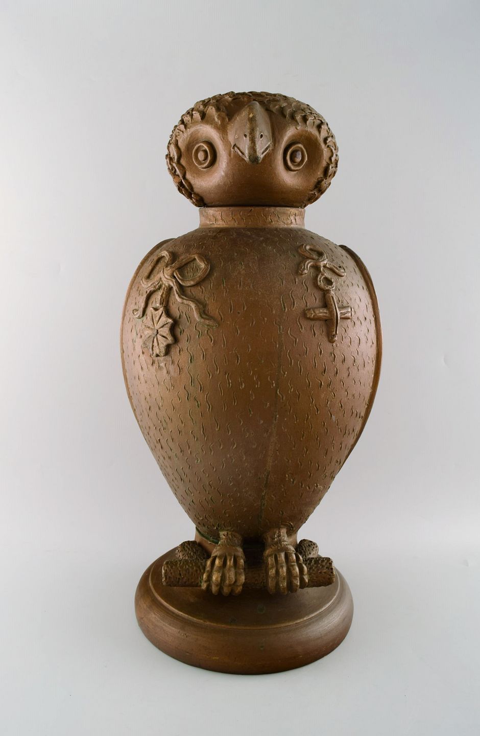Stor Skotterup-ugle med aftageligt hoved af glaseret lertøj.