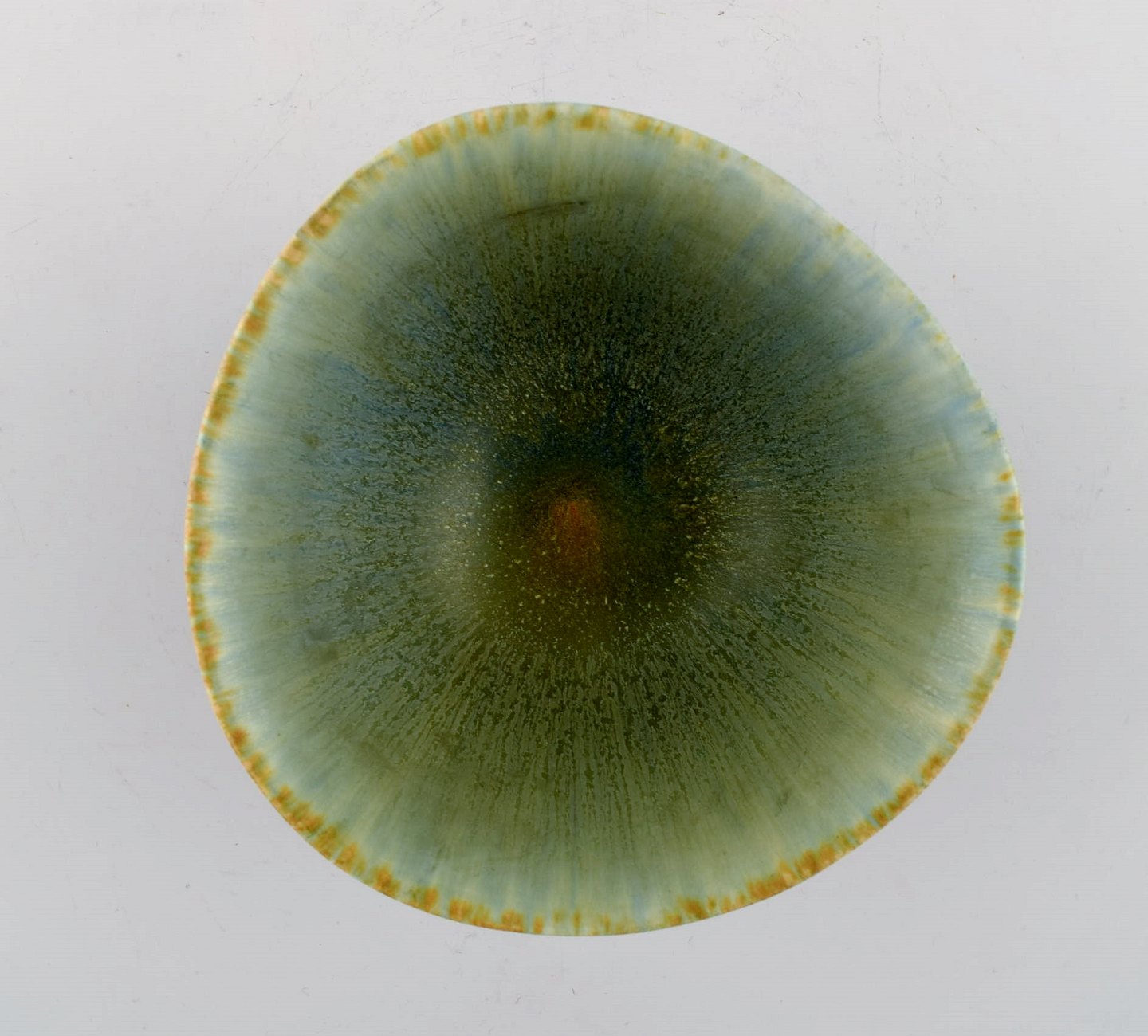 Carl-Harry Stålhane, Rørstrand, keramikskål. Smuk æggeskalsglasur i blå/grønne nuancer. Måler 14,5 x 7 cm. I flot stand. 2. Sortering.