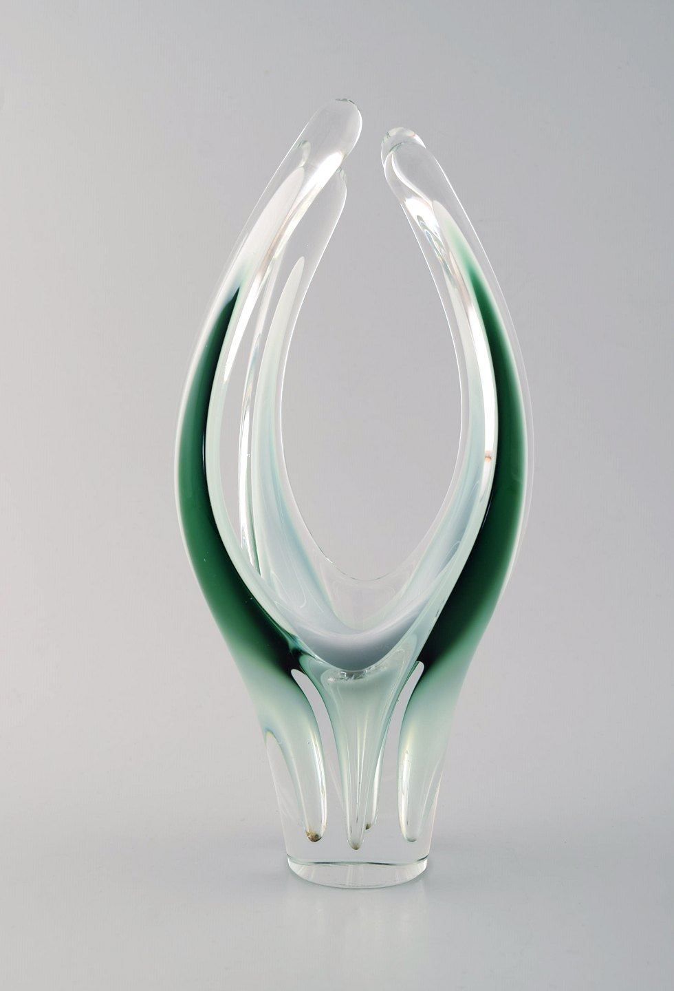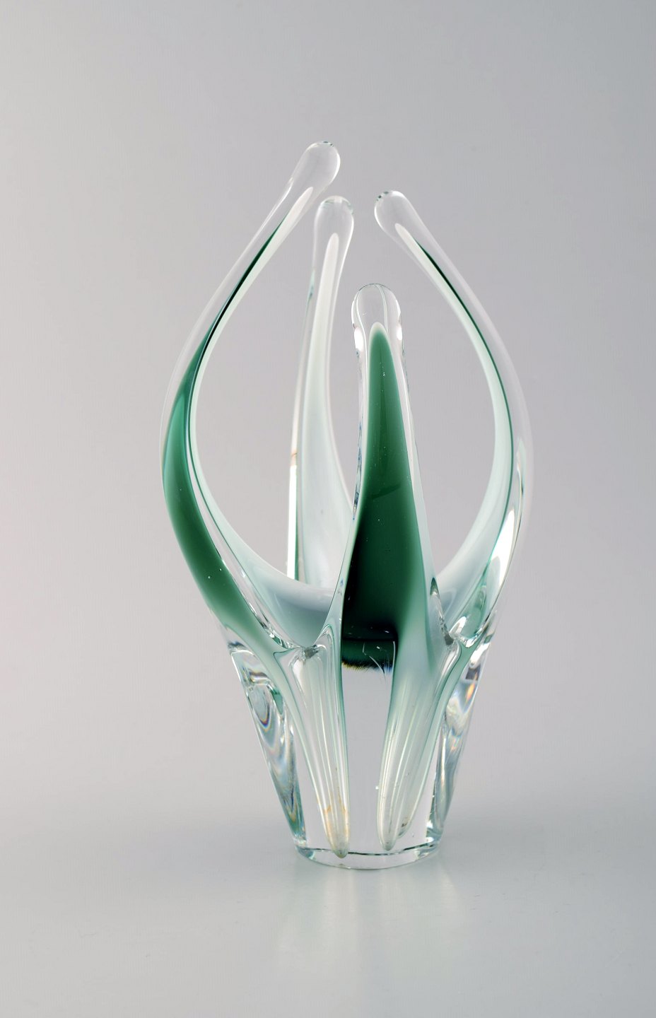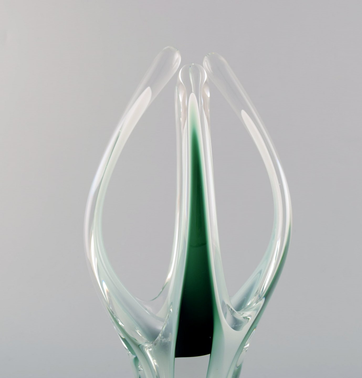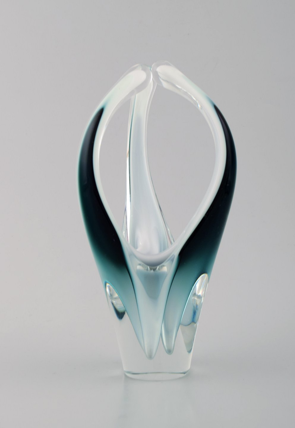 Paul Kedelv for Flygsfors. Sæt på 3 blå / grønne "Coquille Fantasia" vaser. Svensk design, 1950'erne.