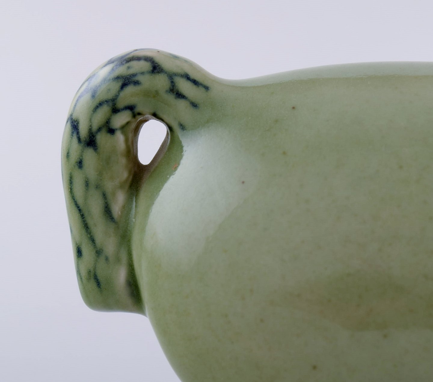 Stig Lindberg for Gustavsberg. Hestefigur af stentøj, dekoreret i grøn celadon glasur. Udført og stemplet hos Gustavsberg, Sverige. Måler: 17 x 16 cm. I flot stand.