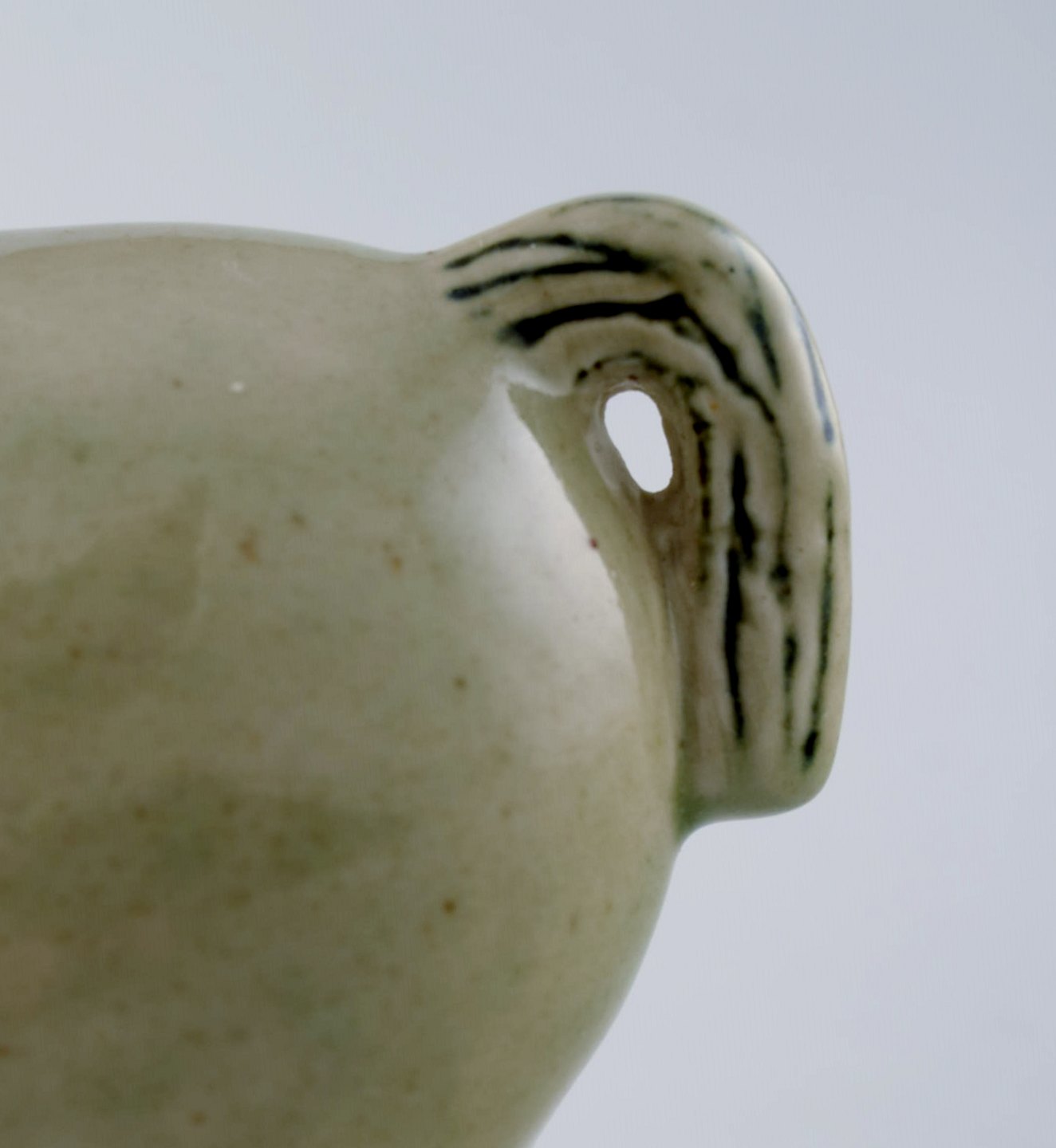 Hestefigur af stentøj, dekoreret i grøn celadon glasur.