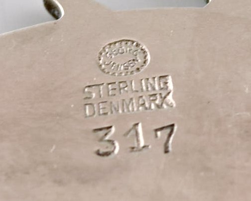 Broche i sterlingsølv af Georg Jensen. Designnummer 311. Et par delfiner.