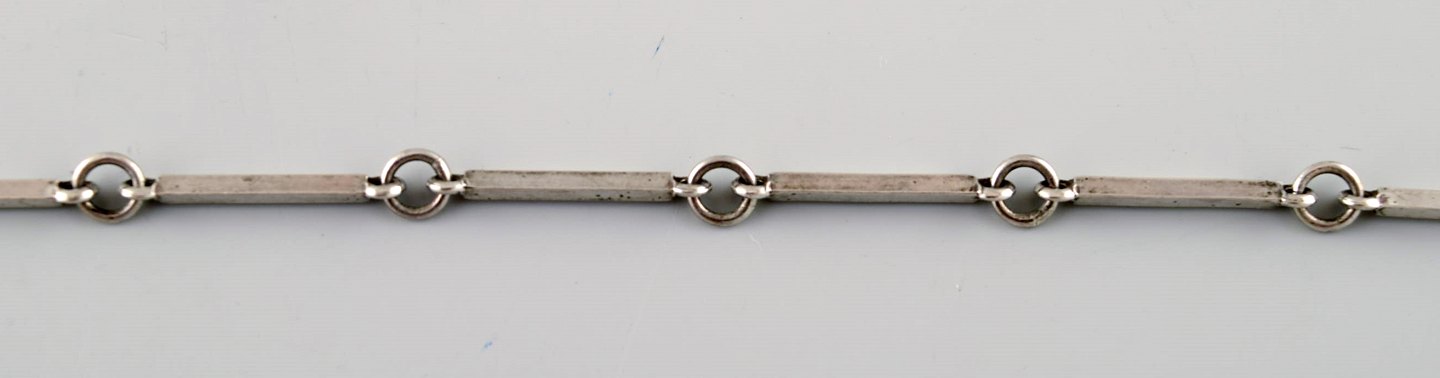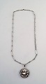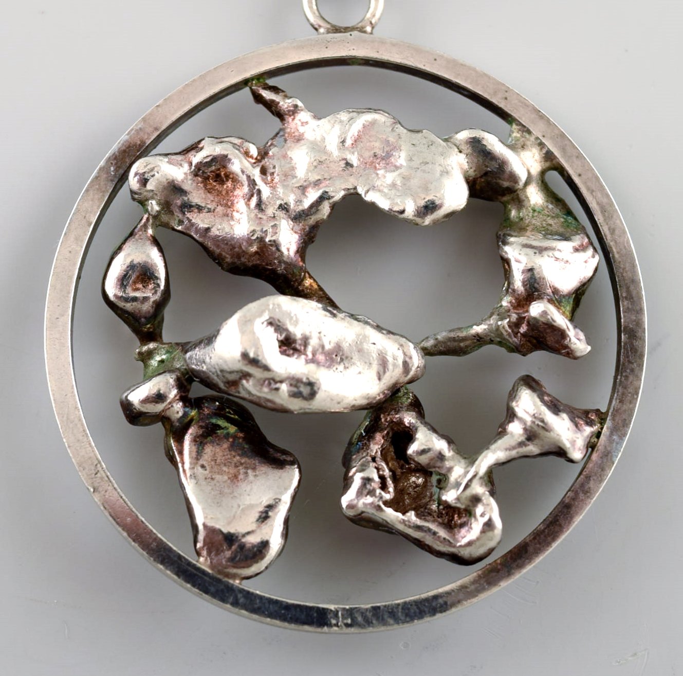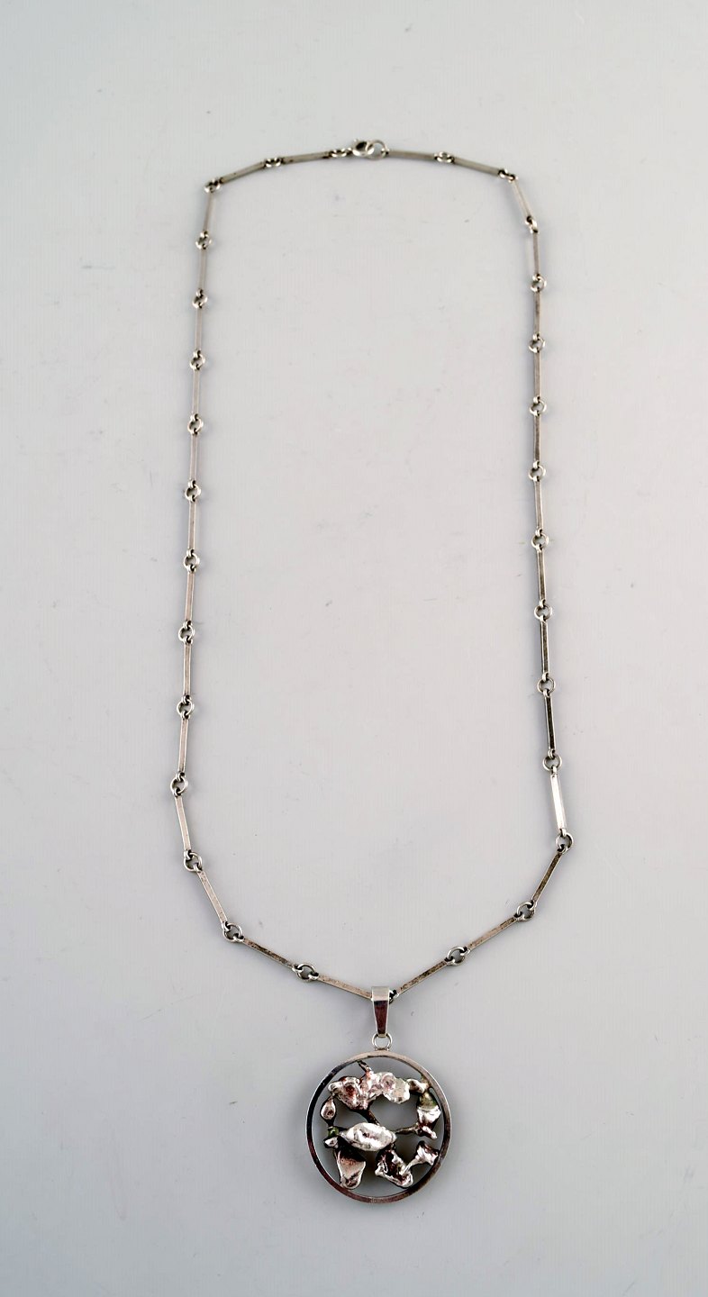 Ekenäs gold Nandor Kocsan, Hungarian-Swedish silversmith. Modernist silver necklace with organic pendant. 1972.